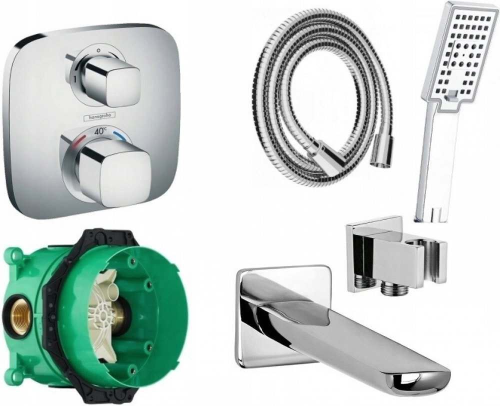 Hansgrohe podomítkové vanové koupelnové stříbrné termostatické kovové