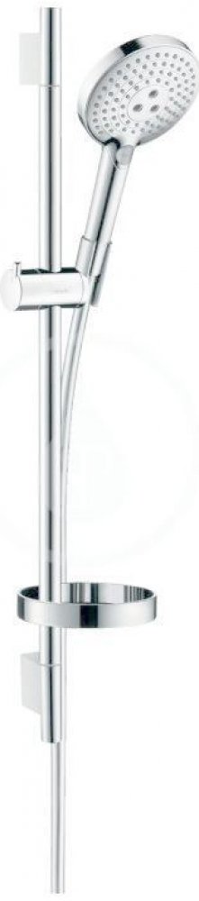 Technické parametry druh proudu: Rain, RainAir, WhirlAir pohodlné přepínání druhů proudu tlačítkem Select velikost sprchové hlavice: 125 mm otočné klouby na obou koncích zabraňují nepříjemnému kroucení sprchové hadice úhel sklonu měnitelný o 90°, jezdec je vychýlitelný vlevo a vpravo a také nahoru a dolů maximální průtok (při 0,3 MPa): 15 l/min chromované držáky na stěnu z umělé hmoty Set obsahuje ruční sprchu Raindance Select S 120 3jet (# 26530000) nástěnnou tyč Unica’S Puro 0,65 m (# 28632000) sprchovou hadici Isiflex 1,60 m (# 28276000) misku na mýdlo Casetta’S Puro (# 28679000)