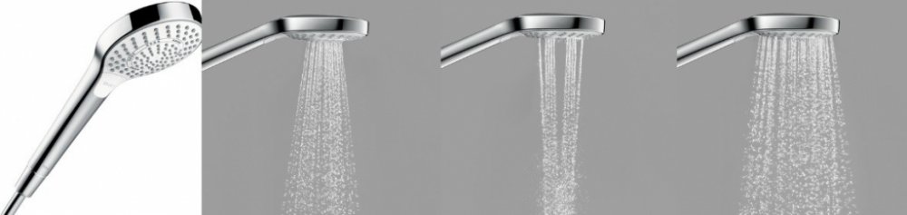 Dopřejte si fantastické potěšení ze sprchování po pouhém stisknutí tlačítka a zvolte si prémiovou ruční sprchu Hansgrohe se 3 druhy vodního proudu!