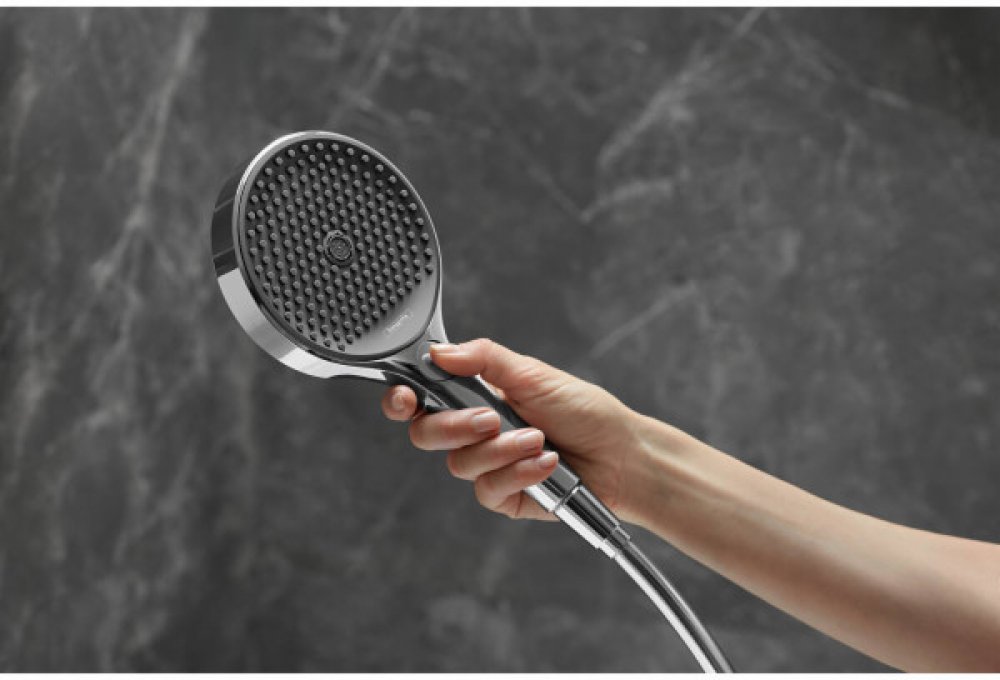 Ruční sprcha Rainfinity 130 3jet značky hansgrohe Vás bude hýčkat třemi různými druhy proudu: PowderRain vytváří lehounký plášť z jemných mikrokapek. Zahalí tělo a sprchování promění v jedinečný požitek. Intense PowderRain je koncentrovaný proud vody, kterým lze snadno smýt z vlasů šampon. A MonoRain s čistým, přesně namířeným proudem, který je ideální pro wellness procedury a vodní střiky podle Kneippa. Všechny druhy proudu se snadno přepínají stisknutím tlačítka hansgrohe Select.