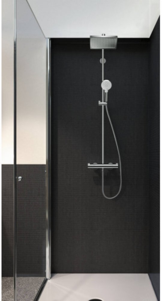 Už dávno neplatí, že sprchování je pouze očista. S využitím moderních technologií je to také prostředek uvolnění či povzbuzení. Zároveň dokáže svým designem příjemně potěšit i estetickou stránku našeho cítění. Sprchový set Hansgrohe E Showerpipe vás ve výkonnosti, ale také stylu rozhodně nezklame. Naopak, získáte báječného společníka, který potěší nervová zakončení ve vaší pokožce i unikátní designový skvost. Využít můžete vodního proudu Rain , který poskytuje čtvercová horní sprcha Hansgrohe Crometta s délkou strany 240 mm. Díky nastavitelnému úhlu můžete vodní paprsky přesně zaměřit. Ruční sprcha se sprchovou hadicí v délce 1 600 mm vaši lázeň ještě oživí. Usadit ji můžete v posuvném držáku. Jistě oceníte také snadné, avšak bezpečné ovládání sprch. Termostat Ecostat 1001 CL, určený k instalaci na stěnu ovládáte prostřednictvím otočných rukojetí. Součástí nastavení teploty je také bezpečnostní pojistka, která znemožní náhodné přetočení rukojeti přes 40 °C. Sprchový set E Showerpipehorní sprcha Crometta E 240velikost sprchové hlavice: 240 x 240 mmnastavitelný úhel horní sprchydruhy proudu: Rainprůtok proudu Rain (při 0,3 MPa): 15 l/ minkompletně chromovaný disk vodních paprskůdélka sprchového ramena: 350 mmtermostat Ecostat 1001 CLbezpečnostní pojistka na 40 °Cnastavitelné omezení pro horkou voduovládání výtoků otočnou rukojetízpůsob instalace: montáž na stěnurozměr připojení DN15závit připojení G ?rozteč středů 150 ± 12 mmvýškově stavitelný držák ruční sprchyObsahujesprchovou hadici Isiflex 1,60 m (# 28276000)horní sprchu Crometta E 240 1jet (# 26726000)ruční sprchu Crometta Vario (# 26330400)