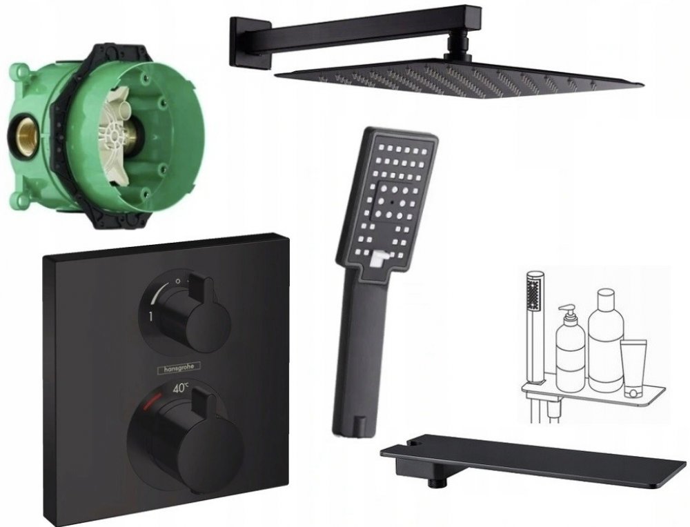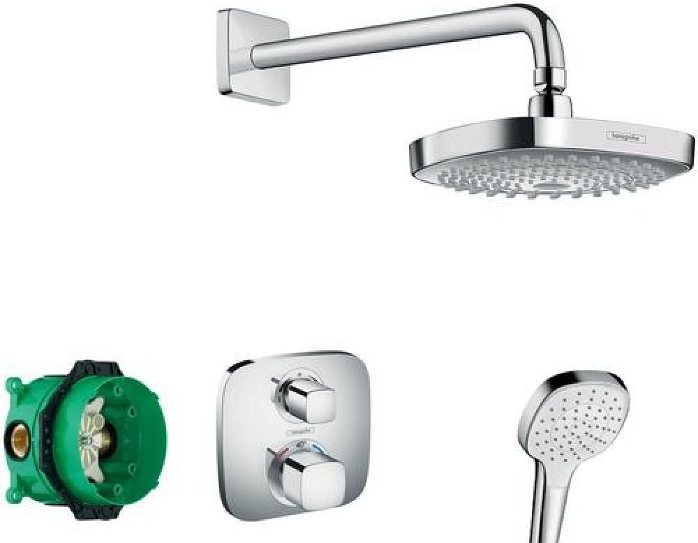 Potěšení ze sprchování dovolí vašemu tělu relaxovat. Sprchová souprava Ecostat E od výrobce Hansgrohe však posouvá možnosti sprchování ještě o kousek dál. Elegantní a neotřelý design čtverce vyšperkovaného zaoblenými hranami získá okamžitě dominanci v prostoru vaší koupelny, aniž by však narušil celkovou atmosféru místnosti. Spolu se soupravou Ecostat E nezískáte jen originální nádech koupelny, ale zejména vysoce praktický a spolehlivý produkt. Sprchová souprava je vybavena řadou technologií, které zajistí hladký provoz celého systému.Srdcem je podomítková termostatická baterie s bezpečnostním zámkem a nastavitelným omezovačem teploty. Součástí setu je i podomítkový instalační modul. Hlavová sprcha nabízí hned dva proudy vody, mezi kterými můžete snadno přepínat díky technologii Select. Tato technologie umožňuje i hladké a rychlé přepínání mezi ruční a hlavovou sprchou. Váš zážitek ze sprchování umocní i technologie XXLPerformance. Povrchy jsou ošetřeny speciální technologií QuickClean, která zabraňuje nejen vodnímu kameni, ale též bakteriím a nečistotám se na nich usazovat. Díky tomu se životnost celého setu výrazně prodlužuje.Sprchový sethorní sprcha Croma Select E 180 2jet (# 26524000)sprchové rameno E, délka 389 mm (# 27446000)ruční sprcha Croma Select E 1jet (# 26814400)sprchová hadice Isiflex 1,25 m (# 28272000)sprchový držák Porter’S (# 28331000)Fixfit, přípojka hadice se zpětným ventilem a plastovým šroubením (# 26457000)Ecostat E, termostatická baterie pod omítku pro 2 spotřebiče (# 15708000)základní těleso iBox universal (# 01800180)