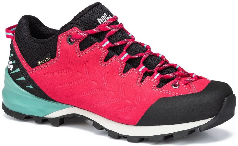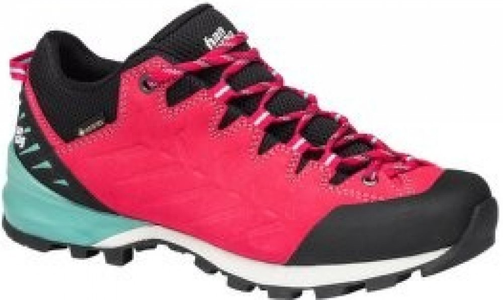Hanwag Makra Pro Low Lady GTX - jsou robustní dámské approach - nástupové boty. Jsou určené pro lezení ferrat, příchod do skal, turistiku. Jsou vyrobené z robustních materiálů, které vydrží kontakt se skálou. Je u nich použita membrána goretex, která zlepšuje jejich vlastnosti v mokru a dešti.Podrážka je z Vibramu, má vysokou životnost proti ochození. Mají optimalizovanou tvrdost pro dobrou přilna...