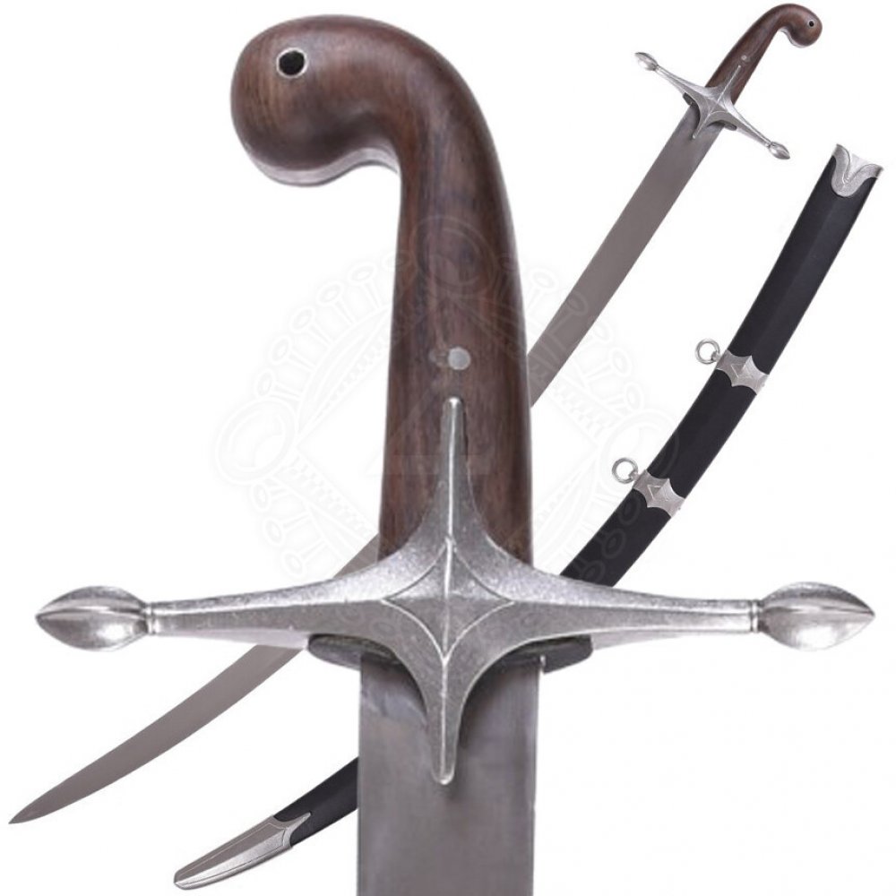 Tato replika Šamšíru má čepel z uhlíkové oceli. Zakřivená kulovitá hlavice je vyrobena v jednom kuse s rukojetí. Tvoří jí dvoudílné obložení stopky čepele, což dohromady tvoří elegantní a pohodlné místo pro držení této výjimečné zbraně.