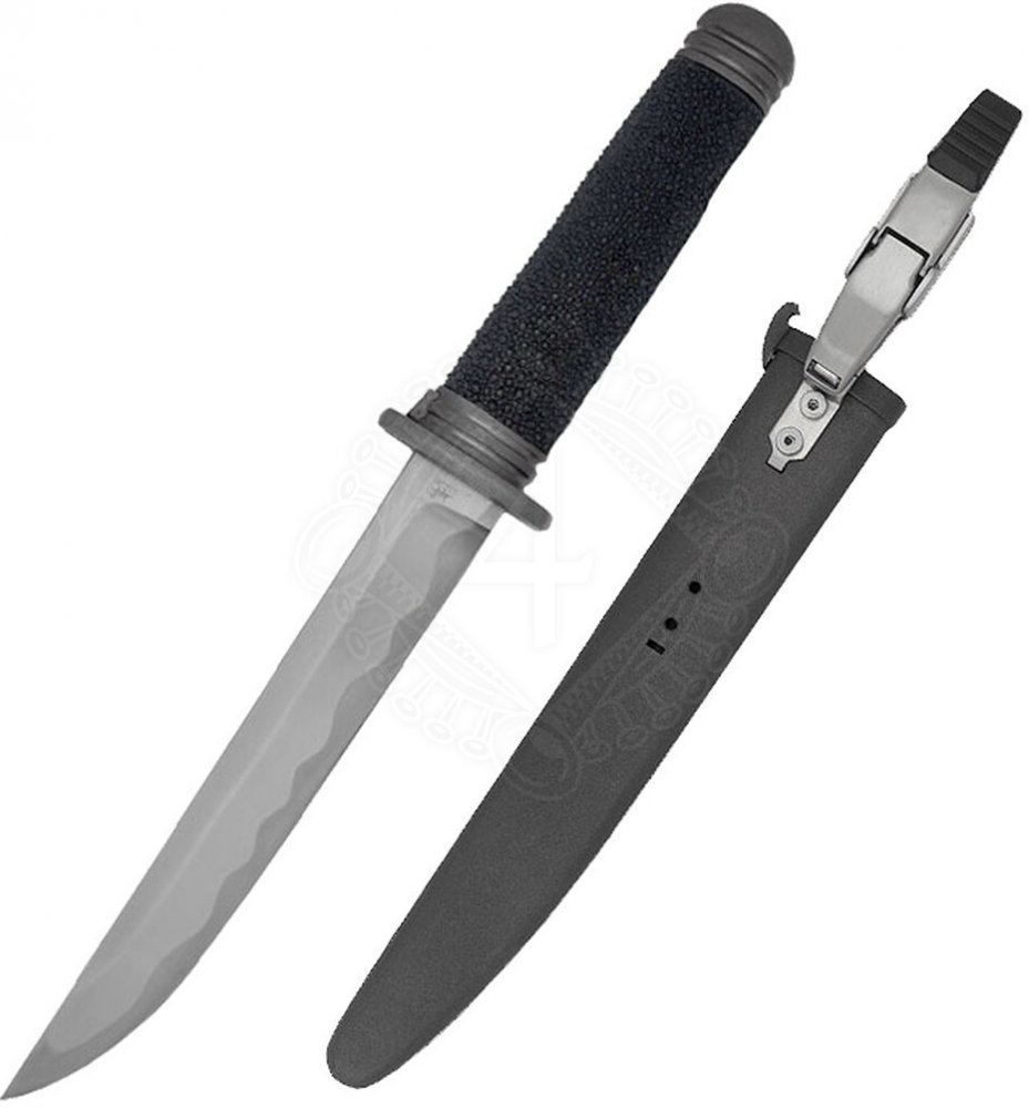 Nůž má čepel z uhlíkaté oceli o délce 17cm a silnou stopku pod pravou kůží z rejnoka. Poskytuje tak dostatečnou pevnost a hmotnost pro efektivní použití Kashira (zakončení rukojeti). Uzamykací jazýček (ViseClip) poskytuje spolehlivé uzavření v ocelovém plášti potaženém práškovou barvou, který je také lemován nylonem pro použití s nízkou hlučností. Pro připevnění spony jsou k dispozici dvě polohy, které umožňují tanto nosit čepelí směřující nahoru nebo dolů. Jedná se o výrobek špičkové kvality od společnosti Hanwei!