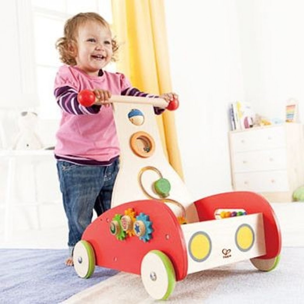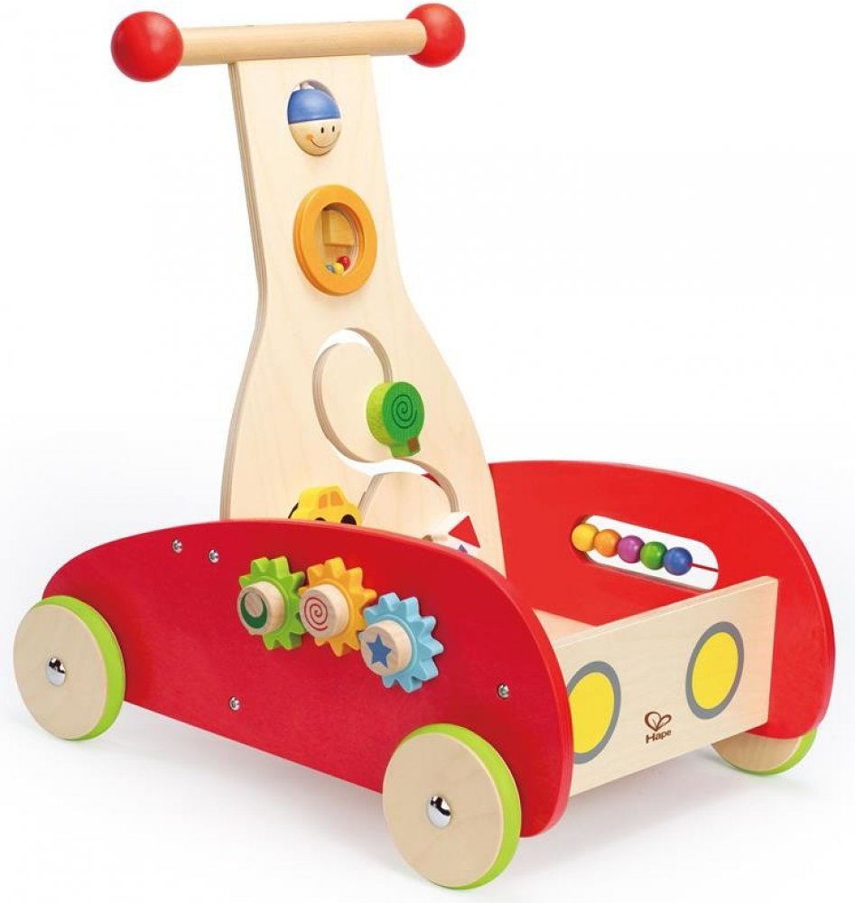 Hravé chodítko pro děti od 12 měsíců. Chodítko dětem poskytne stabilní základ pro první krůčky. Zároveň na něm děti ke své radosti objeví spoustu aktivních prvků – pohyblivé knoflíky, ozubená kola a barevné kuličky. Skvělé pro rozvoj pohybových dovedností a fyzické síly. Podporuje zručnost, koordinaci ruky s okem a rovnováhu. Rozměry tohoto chodítka jsou 46 x 34 x 50 cm. Vyrobeno ze dřeva, použité...