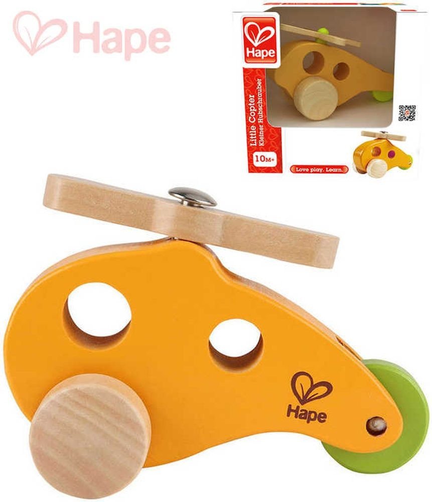 HAPE DŘEVO Baby helikoptera mini oranžová