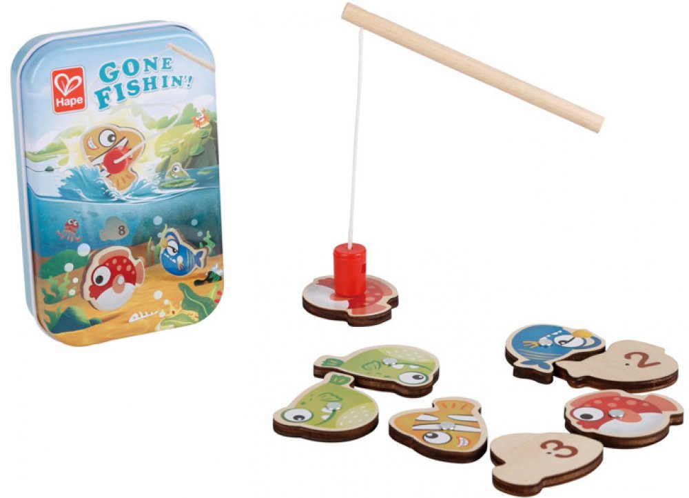 HAPE krabička – Chytání rybiček je zábavná hra pro děti od 2 let. Hrajte si sami nebo s přáteli. Vyberte si číslo a poté se střídejte v chytání ryb. Můžete také sečíst všechna čísla svých ryb a zjistit, kdo má nejvyšší skóre.
