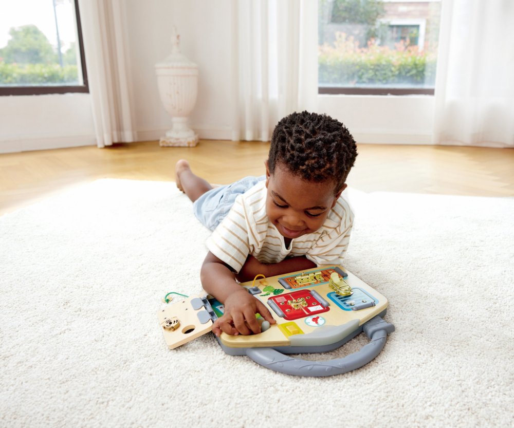 Začněte své odemykací dobrodružství s podmanivou hrací deskou od Hape. Obsahuje různé zámky, dveře a tajné chodby pro nápaditou hru a zábavu při řešení problémů. Hračka je dodávána s různými západkami, které lze otevřít a zamknout. Obsahuje také funkční hodiny, světlo a kočku, kterou lze schovat za jakékoli dveře. Deska zámku je dodávána s rukojetí, která usnadňuje přenášení. Pomáhá dětem rozvíjet...