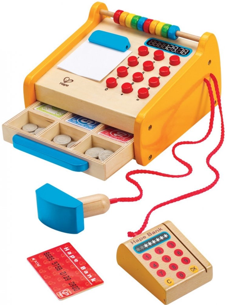 Už od malinka vidí Vaše dítě prodavače v akci, když chodíte nakupovat. S Hape Dětskou kasou si může na toto povolání hrát.