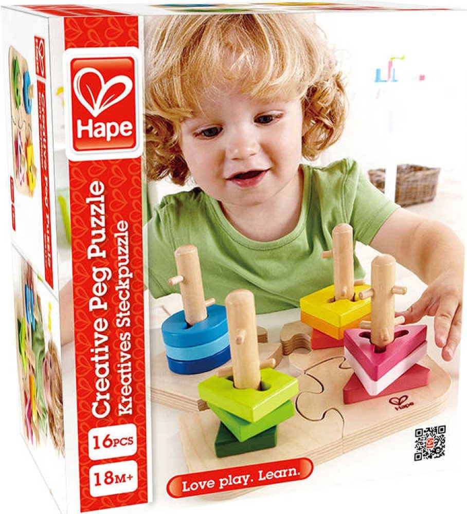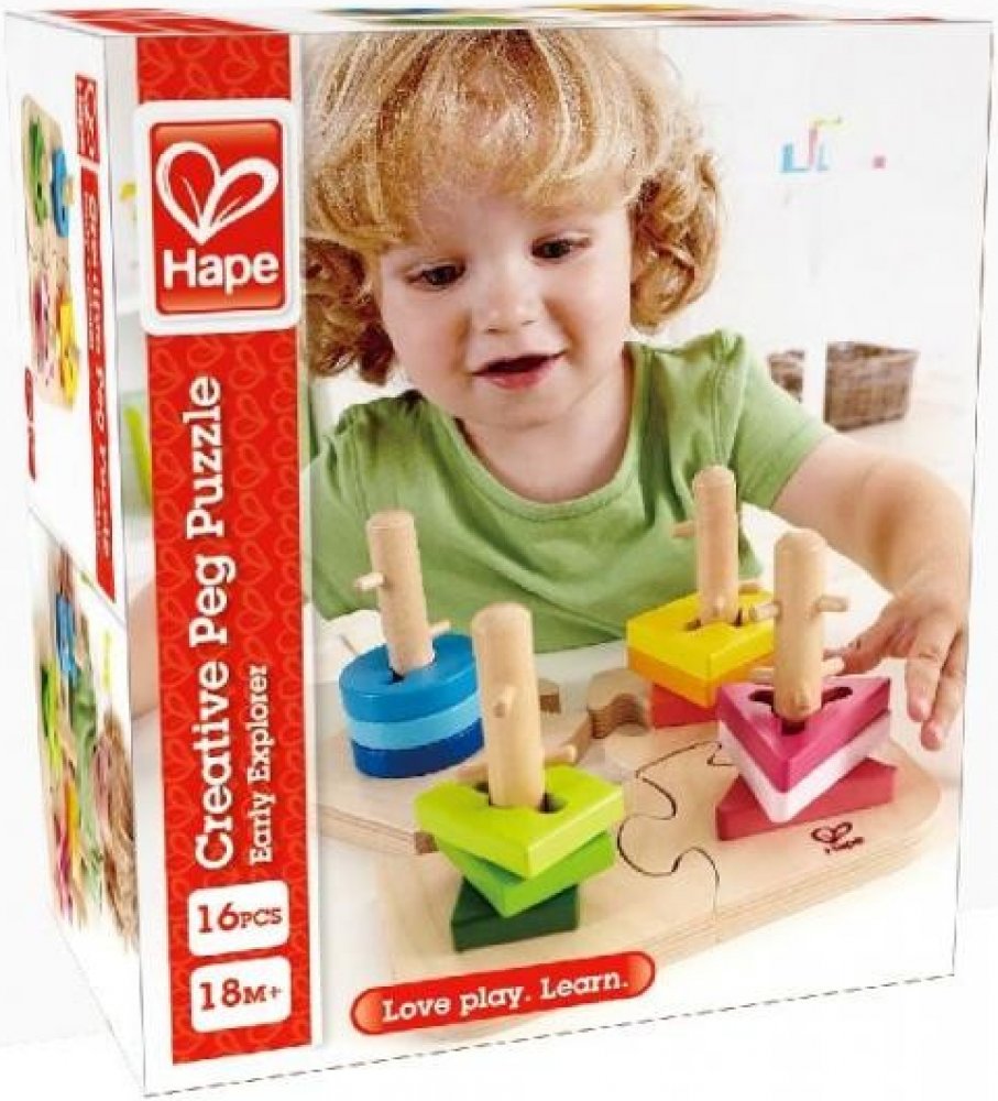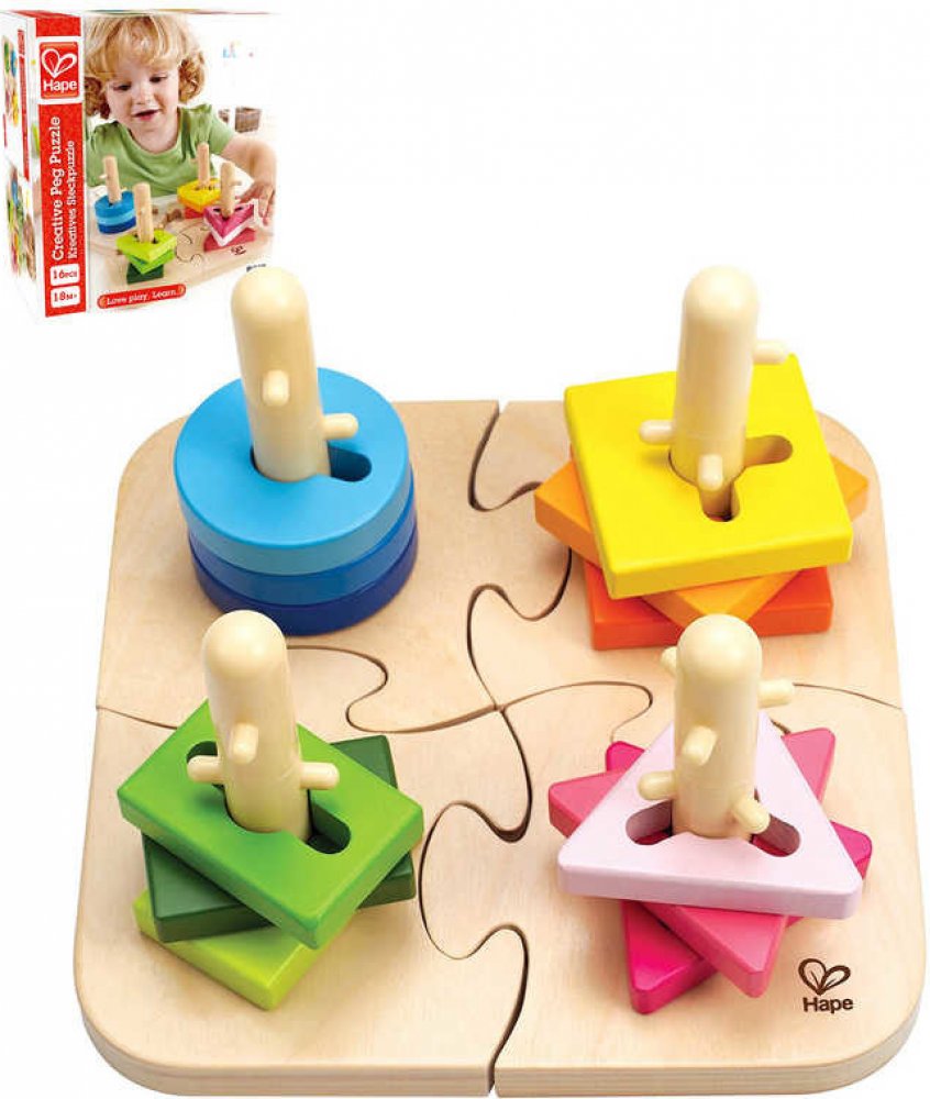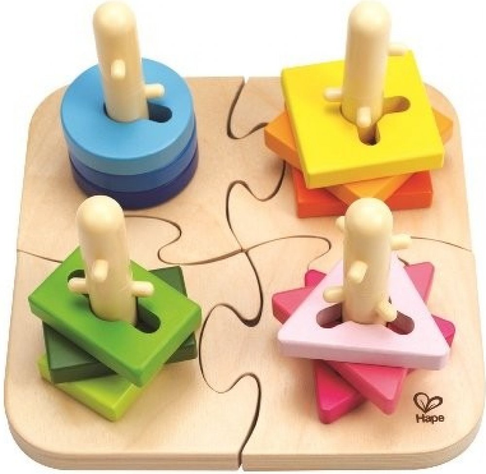 Kreativní puzzle pro nejmenší! Zaujmou kvalitním provedením a výraznými barvami. Jedná se o čtyři dílky puzzle, které jsou spojené dohromady, a na každém je umístěn dřevěný sloupek. Jednotlivé tvary i