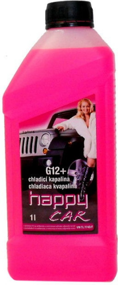 HAPPY CAR Antifreeze G 12+ je kapalina růžové barvy, bez zápachu, hořké chuti. S vodou je mísitelná v každém poměru. HAPPY CAR Antifreeze G 12+ je roztokem monoethylenglykolu s inhibitory koroze, stabilizátory, odpěňovačem a přísadou proti požití.