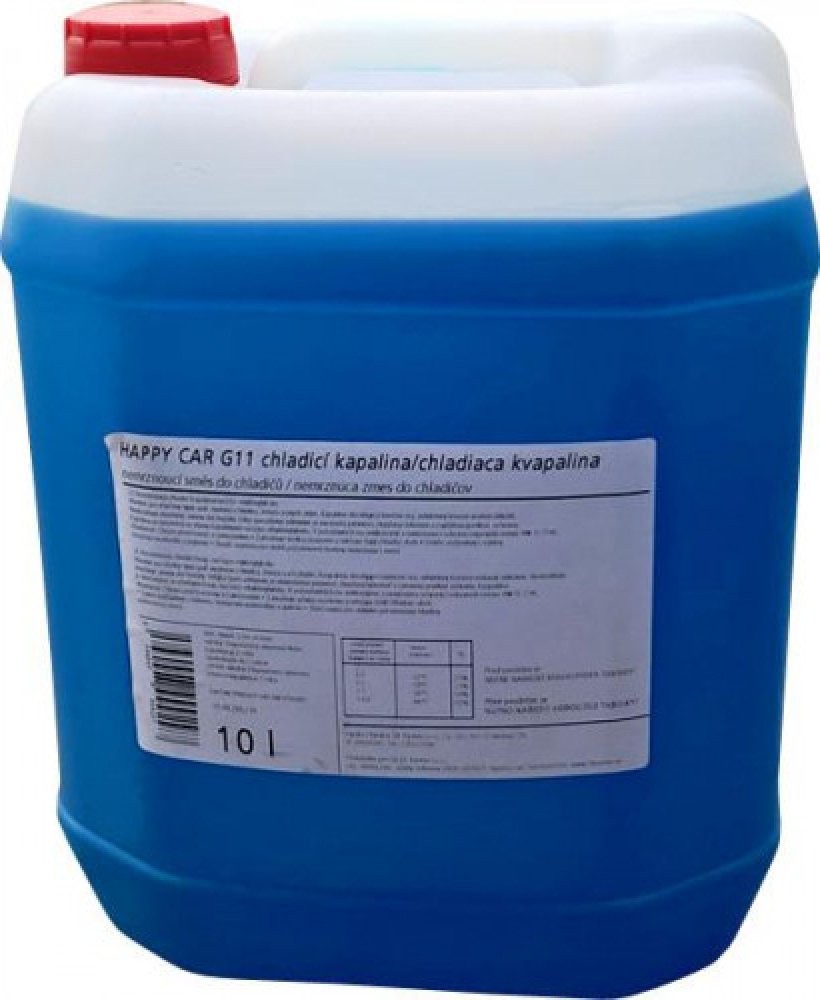 Happy Car Chladicí kapalina G11 Popis: Je to beznitritová chladící kapalina na bázi monoethylenglykolu. Může být použita ve všech spalovacích motorech, jejichž konstrukce je založena zejména na bázi hliníku, železa a jejich slitin. Kapalina obsahuje částečně organické inhibitory koroze včetně silikátů. Vlastnosti: ...