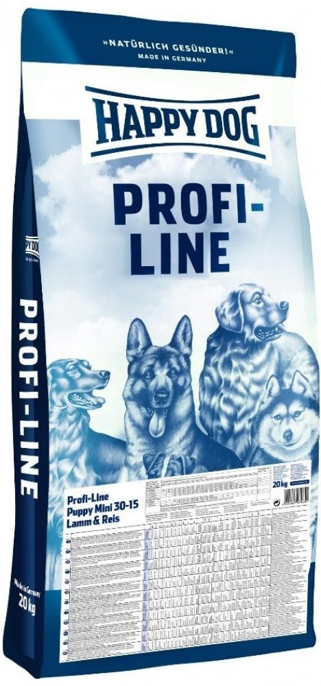 Happy Dog pro štěňata pro malá plemena pro březí / kojící feny jehněčí Happy dog 20 kg prémiové suché na alergii Profi-Line 30 % rýže Mini z Německa střední (200-500mg) 15 % 2.5 % 1.4 % 0.85 % 8 % 0.4 % 0.08 % standardní středně (25-40%) postupný přechod (4–7 dní) základní možné částečná (země výroby)