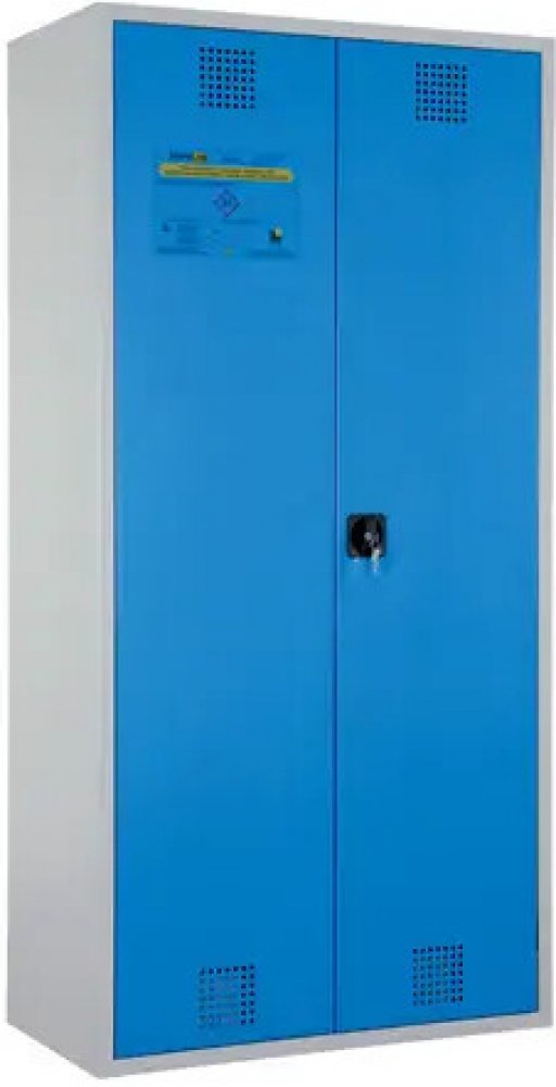 Skříň je vybavena uzamykatelnými křídlovými dveřmi, které jsou zesílené v místě zámku. Větrací otvory podporují přirozenou výměnu vzduchu uvnitř skříně.