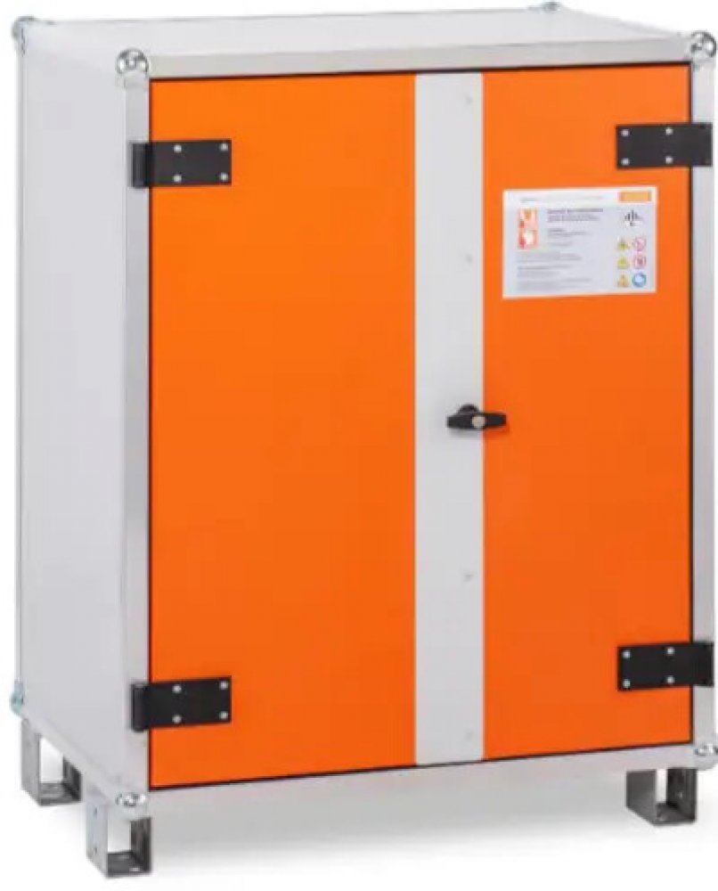 Skříň pro bezpečné ukládání a skladování beterií. Prevence proti vzniku nekontrolovatelného požáru je velmi důležitá, obzvláště u lithiových baterií, které je obtížnější uhasit.