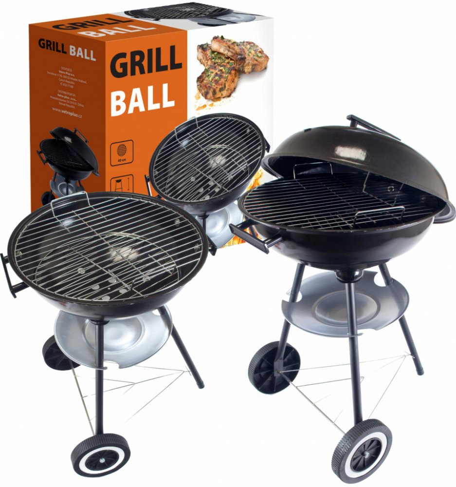 Grill Ball, kulatý gril s poklicí, průměr grilu 40cm, pojezdová plastová kola, popelník, materiál: ocel s povrchovou úpravou.