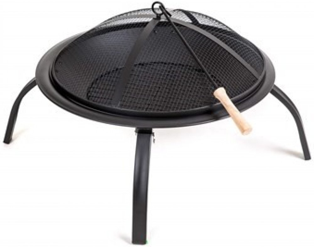 Přenosné kovové zahradní ohniště, plochého typu, se zabudovaným roštem.