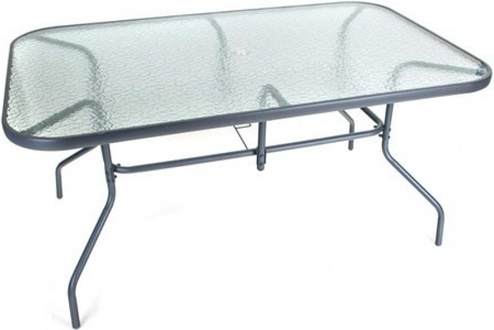 Ocelový stůl se hodí zejména do zahrad a na terasy domů. Stůl je ošetřený tepelně stabilizovanou práškovou barvou. Desku stolu tvoří temperované čiré sklo s vlnitým dekorem o síle 5 mm. Vrchní deska je doplněna průchodkou pro umístění slunečníku, který musí být pevně fixován k podkladu. V skleněné desce stolu je otvor o průměru 5 cm. Otvor je uzavřen plastovou vložkou s víčkem.V plastové vložce j...
