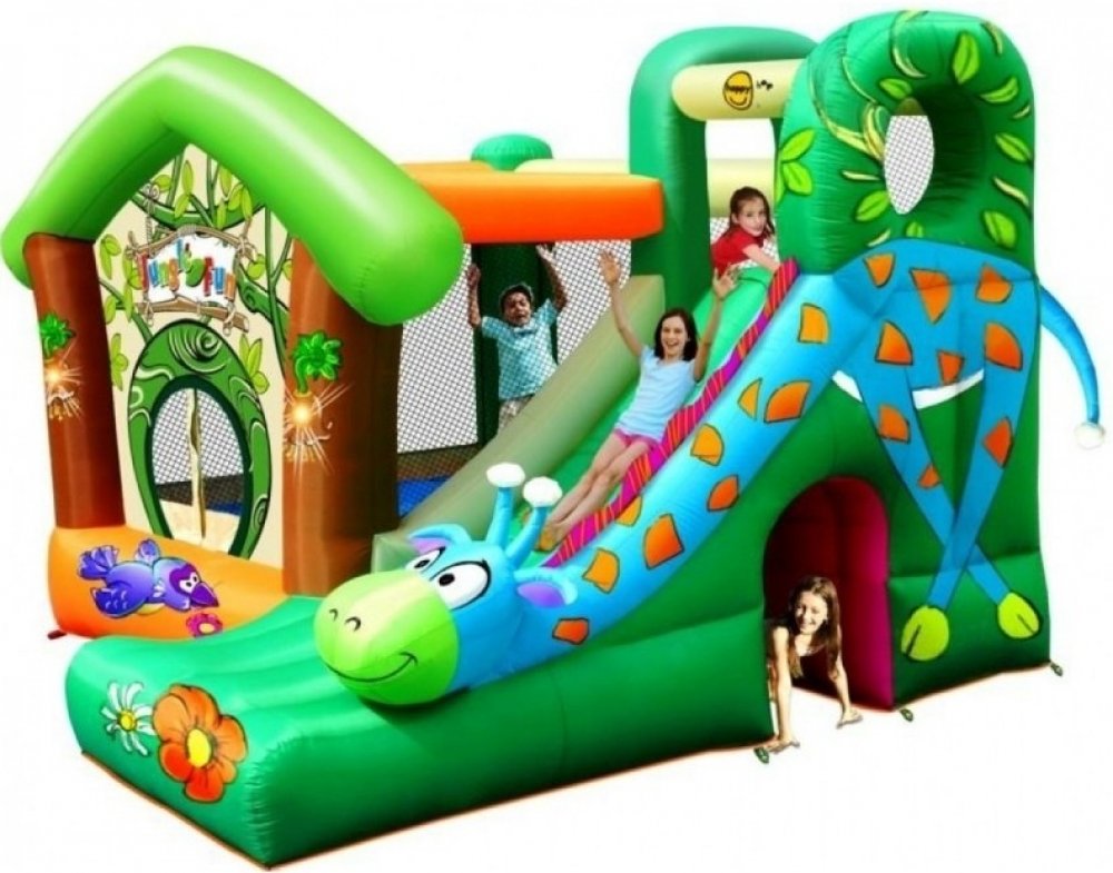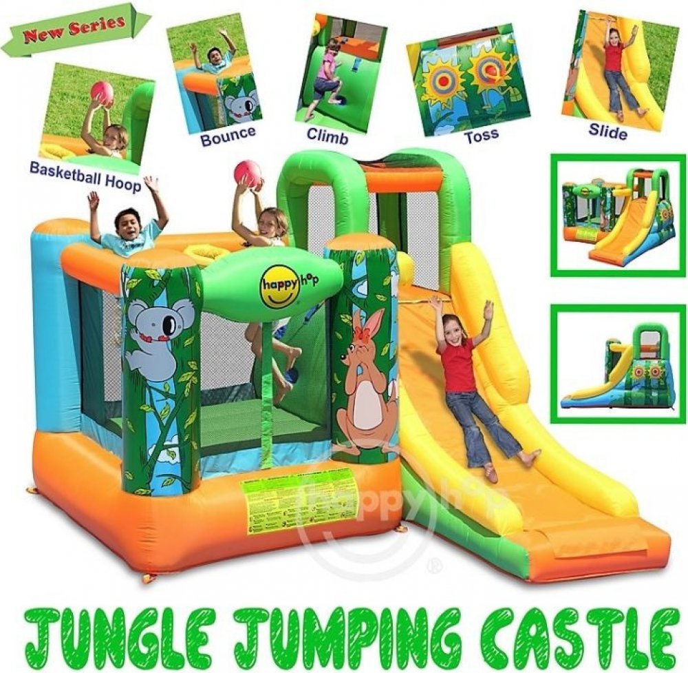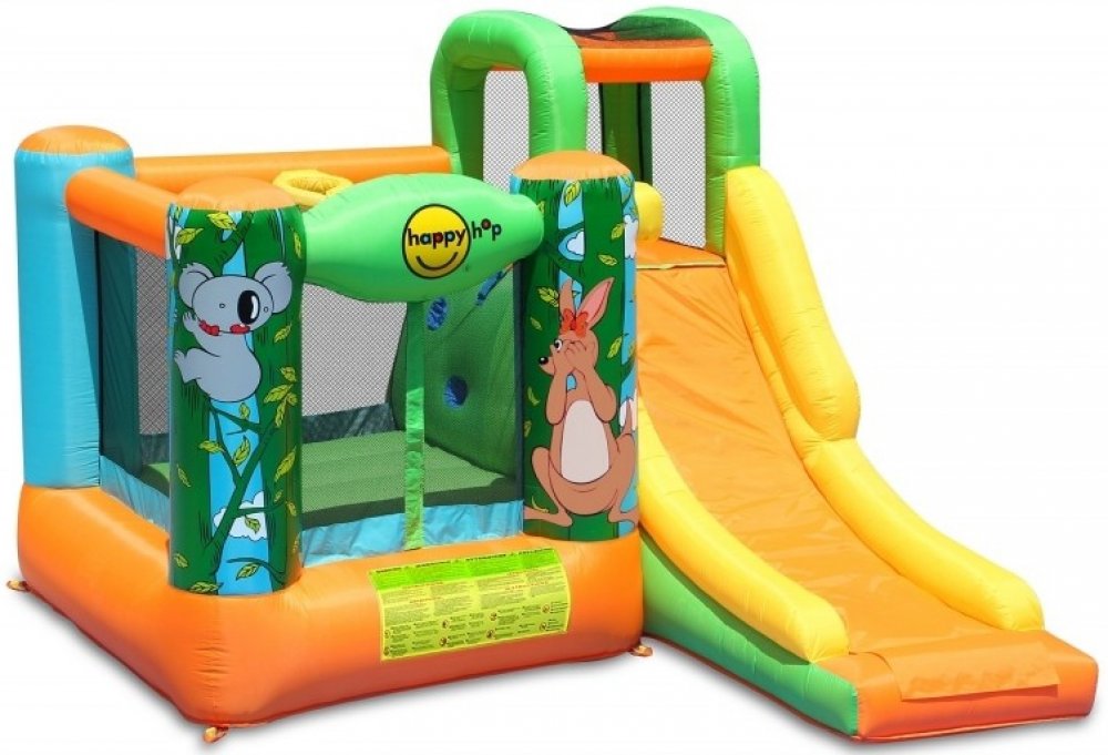 Happy Hop Džungle skákací hrad se skluzavkou a zvířátky obsahuje.