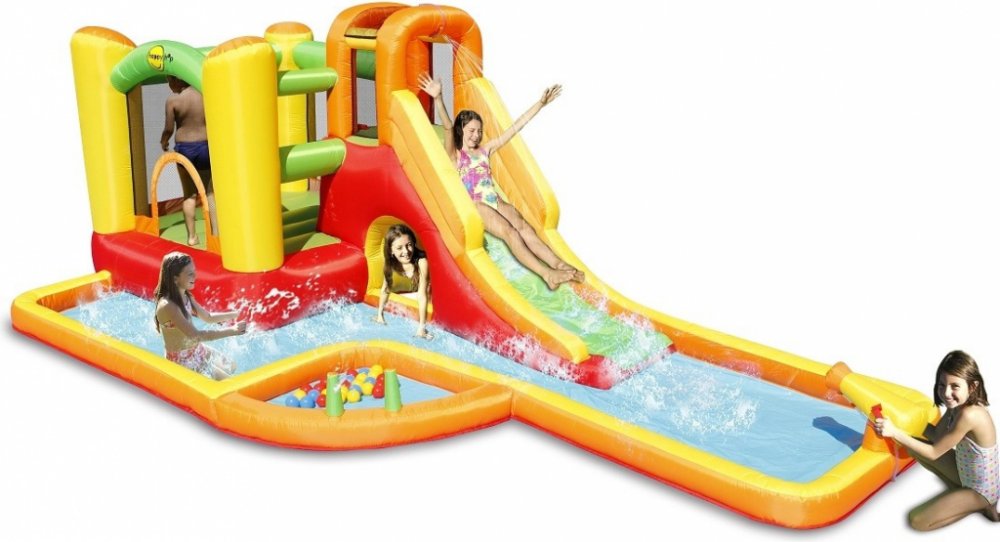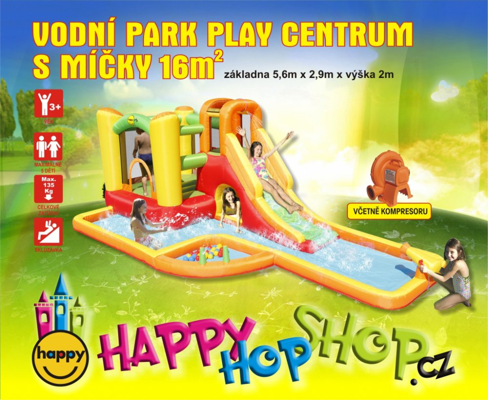 Podívejte se na dvě videa tohoto výrobku značky Happy Hop.Vodní atrakce je možno využívat v i suchém provozu, bez napojení na vodu.Praktické balení Vodní aqua park Play centrum s míčky Happy Hop obsahuje. 1x nafukovací skluzavka 1x fukar 220V / 600W 6x kolíky velké 4x kolíky malé 1x přepravní taška 1x sada pro opravy 1x český návod 30x hrací míčekNabízíme nejširší výběr a nejnižší ceny značkové kvality nafukovacích atrakcí Happy Hop. Kvalitní materiály, dvojité šití, bezporuchový fukar, skvělý design a lákavé barvy. To jsou hlavní kvality skákacích hradů a nafukovacích atrakcí Happy Hop. Vše včetně fukaru najdete v jedné dárkové krabici.Swiftech je přední světový výrobce nafukovacích atrakcí. Na trh jsou výrobky uváděné pod značkou Happy Hop pro hobby použití a Happy Hop PRO pro komerční využití. Zavedená značka a světová jednička ve výrobě atrakcích pro domácí a hobby využití Happy Hop nabízí celou škálu nafukovacích skákadel, hradů a skluzavek. Dále se nabízí překážkové dráhy, herních centra a tobogány. Více než 60 návrhů je patentováno. Firma spojuje dlouhodobé zkušenosti v oblasti výroby s rozsáhlým průzkumem trhu. Cílem je vytvořit nejkvalitnější, atraktivní a multifunkční skákadla na trhu. Všechny naše nafukovací atrakce splňují přísné mezinárodní standardy, včetně: EN71, GS, EMC, BS pro Evropské země a 16CFR1500.3/16CFR1505, UL a ASTM pro Severní Ameriku Proč naše výrobky získaly dobrou pověst a stali jsme se vedoucí značkou na trzích po celém světě? 1. Vše připraveno během několika minut. 2. Není třeba si už atrakce půjčovat, když můžete mít doma vlastní za přijatelnou cenu. 3. Naše výrobky přináší spoustu radosti na narozeninových oslavách, nebo při jakékoli další příležitosti, kdy se děti chtějí skvěle pobavit. 4. Kompaktní konstrukce umožňuje pohodlné uložení. 5. Atraktivní design. Naše vysoce kvalitní produkty jsou k dispozici v široké paletě pestrých barev, tvarů, velikostí a s vlastní motivy. 6. Vývoj, stálá inovace, testování a všech produktů. 7. 8. Více než deset let na trhu. Těšíme se, že výrobky Happy Hop pobaví i vaše děti.