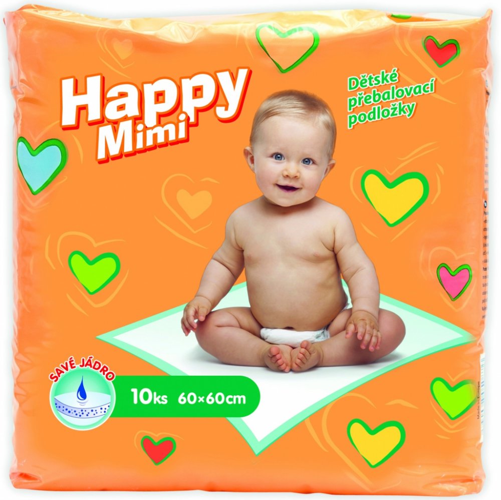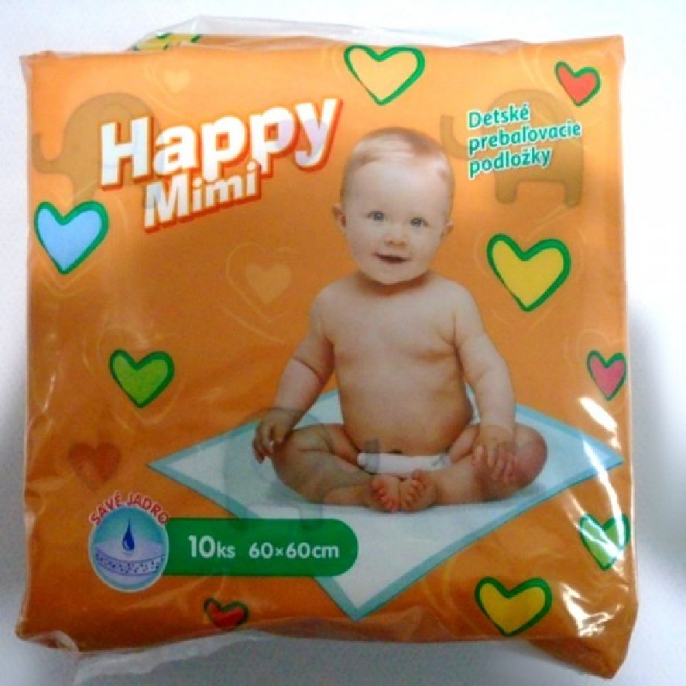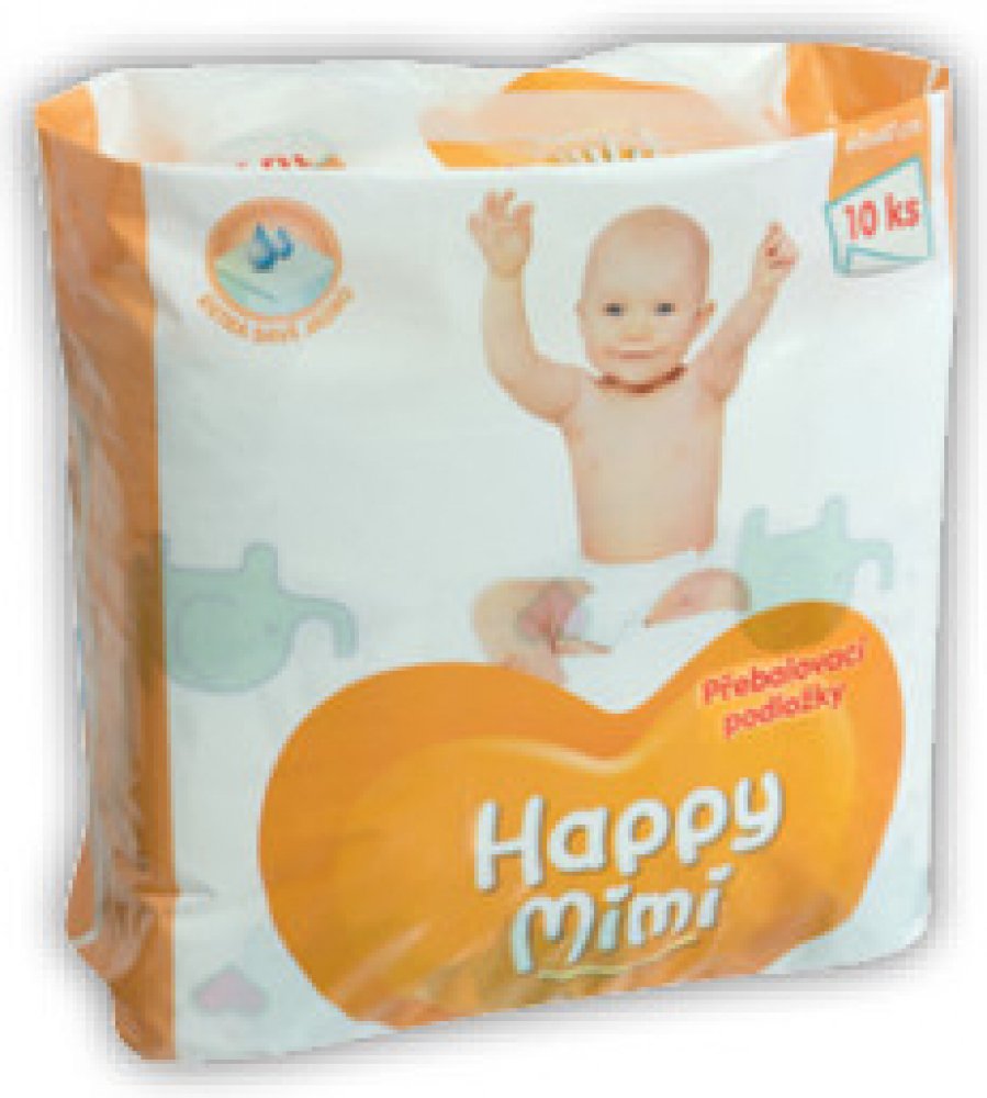 Happy MIMI podložky pro děti10 ksPopis:Podložky na přebalování. Mimořádně měkké a savé. Na použitív domácnosti nebo na cestách. Hygienické přebalování. Spolehlivá ochranapřed prosáknutím. Mnohostranné použití (postýlka, kočárek, piknik,atd.). Vícekrát použitelné, skládací. Pozor: Děti nikdy nenchávejte bezdozoru. Plastový obal skladujte mimo dosah dětí, zabráníte tak možnémunebezpečí udušení. Nejl...