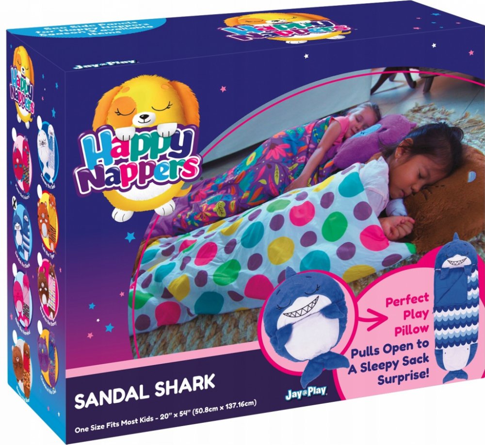 Happy Nappers™ Spacáček Usínáček je úžasný polštář na hraní, který lze překvapivě roztáhnout ve spací pytel.
