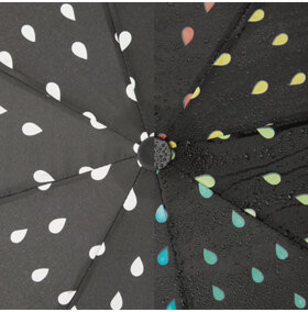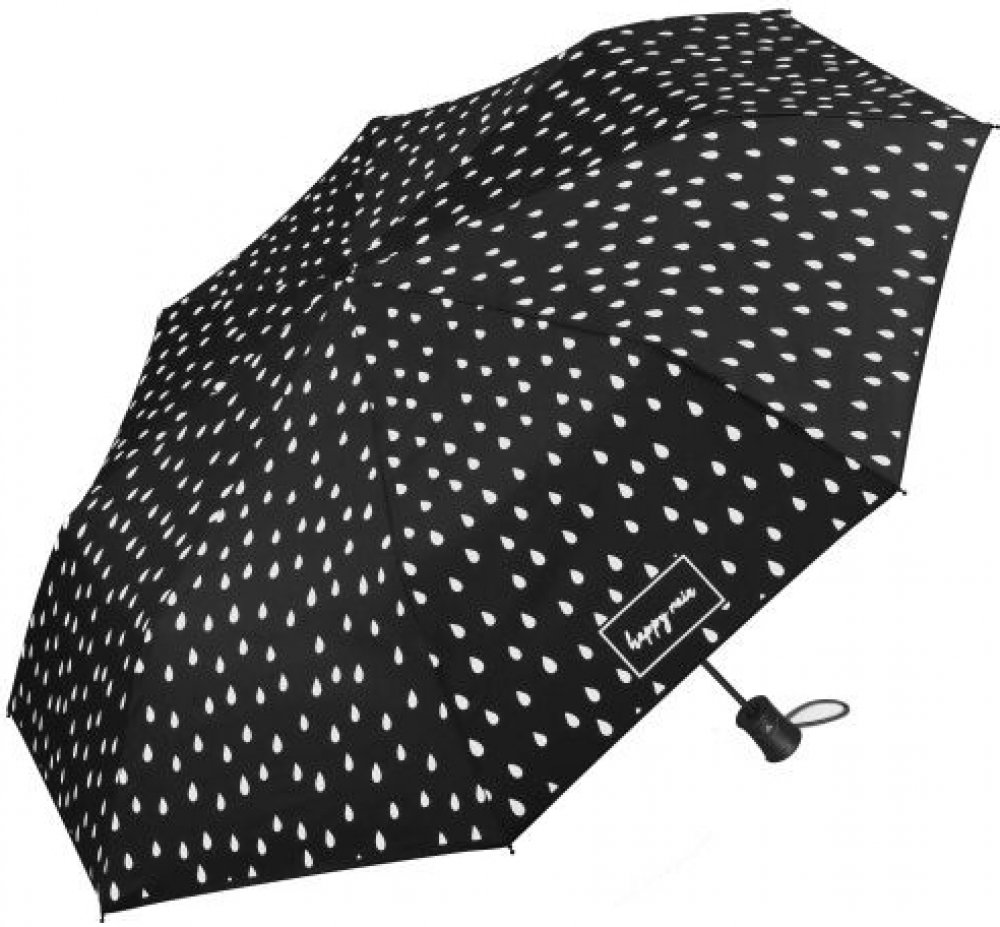 Dámský/Dětský deštník happy rain Essentials Special Editions WATERREACTIVE ve vlhku měnící barvu s automatickým otvíráním. Černý s bílými kapkami, které se po namočení zabarví