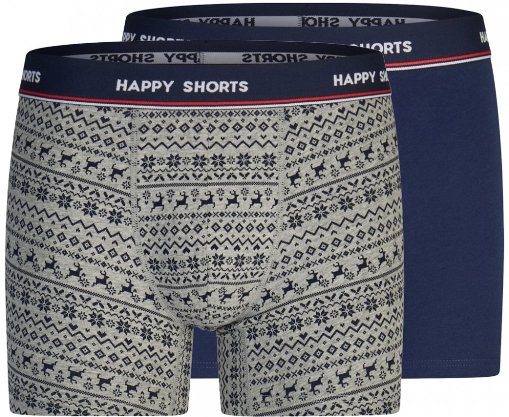 Happy Shorts Pánské vánoční boxerky, 2 kusy Příjemné na nošení díky vysokému podílu bavlny Vánoční motiv Dárkové balení v krabičce Elastický pas s nápisem Happy shorts 2 kusy Materiál 95 % bavlna, 5 % elastan Velikost M - XXL