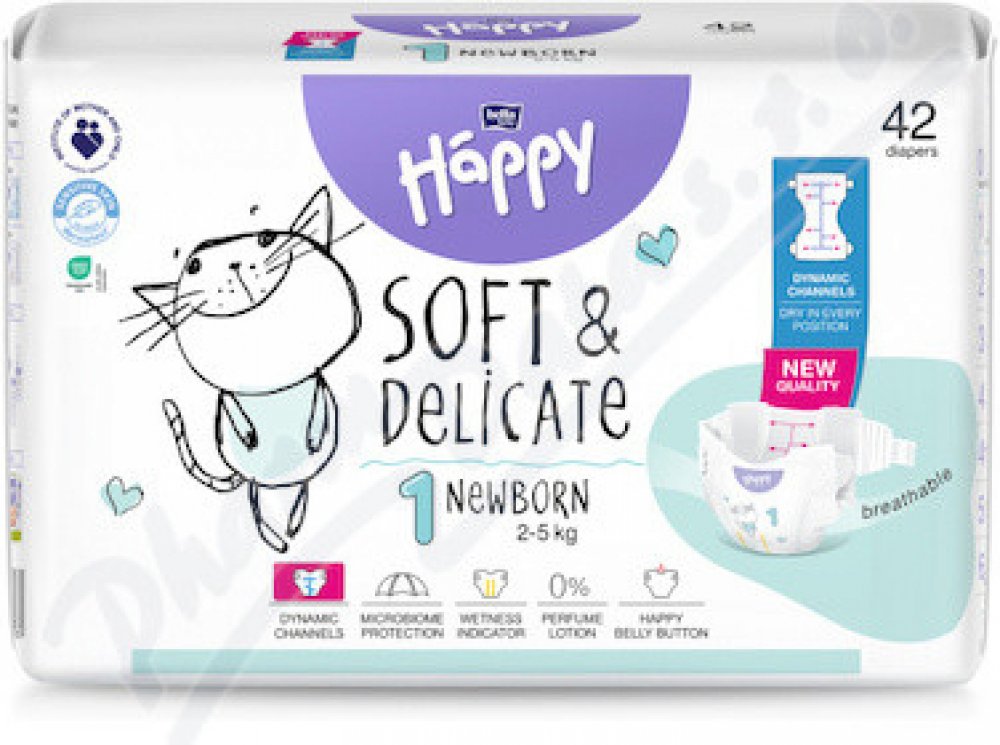 Pleny Happy Soft & Delicate Newborn byly vytvořeny speciálně pro miminka v prvních měsících života. Jsou určeny pro kojence o hmotnosti 2 až 5 kg.