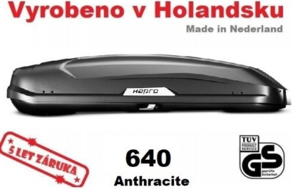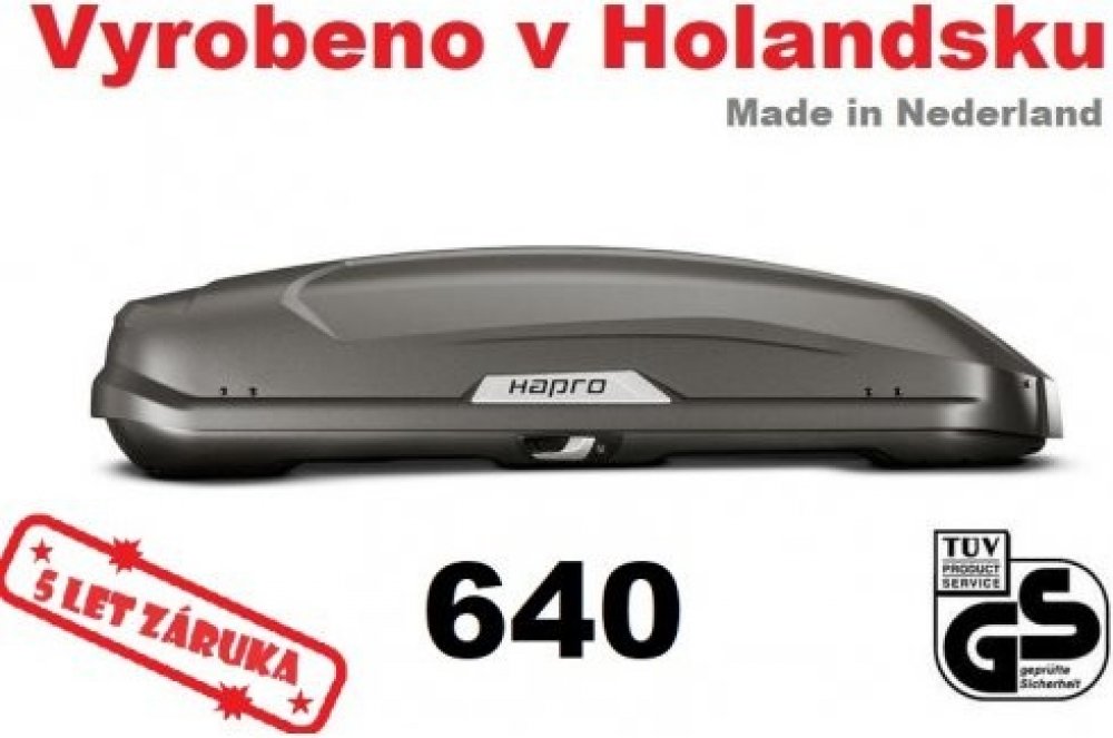 Kvalitní, objemný střešní box od renomovaného výrobce Hapro s 5 letou zárukou.