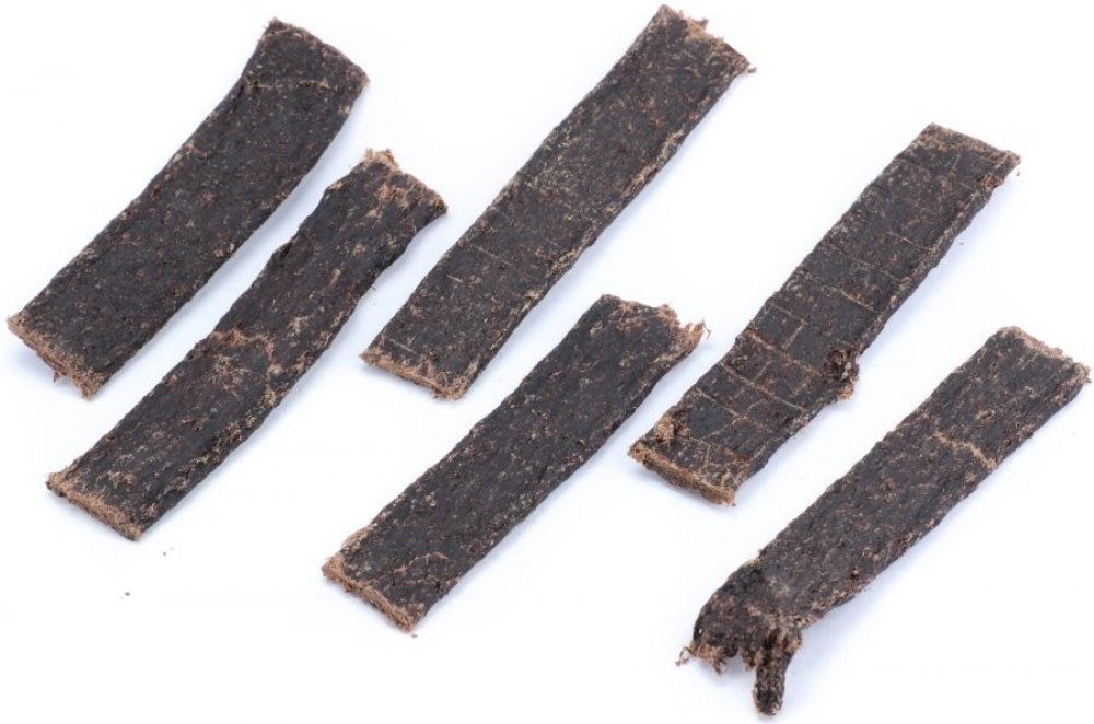 Složení: Syrová, usušená, hovězí svalovina, nakrájená na pásky, bez jakýchkoliv zchutňujících úprav.
