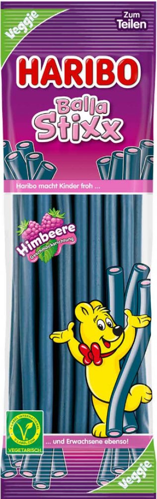 Chcete svým dětem nebo sobě dopřát sladké potěšení, které nejen skvěle chutná, ale navíc dlouho vydrží? Haribo Balla Stixx s malinovou příchutí jsou extra dlouhé ovocné tyčinky s měkkým srdcem a jemným želé obalem, které si zamilujete už po prvním soustu. Vegetariánské složení, ovocné tóny a hravá forma dělají z této dobroty ideální sladkost pro rodin...