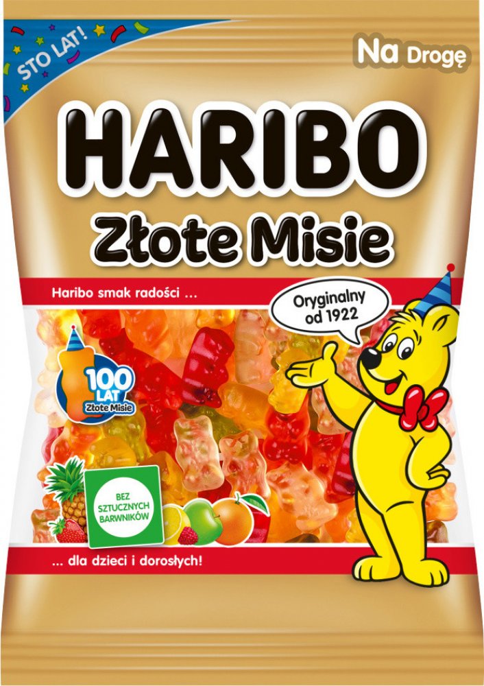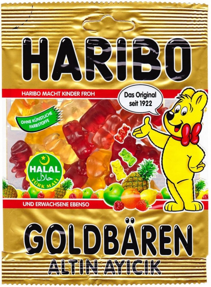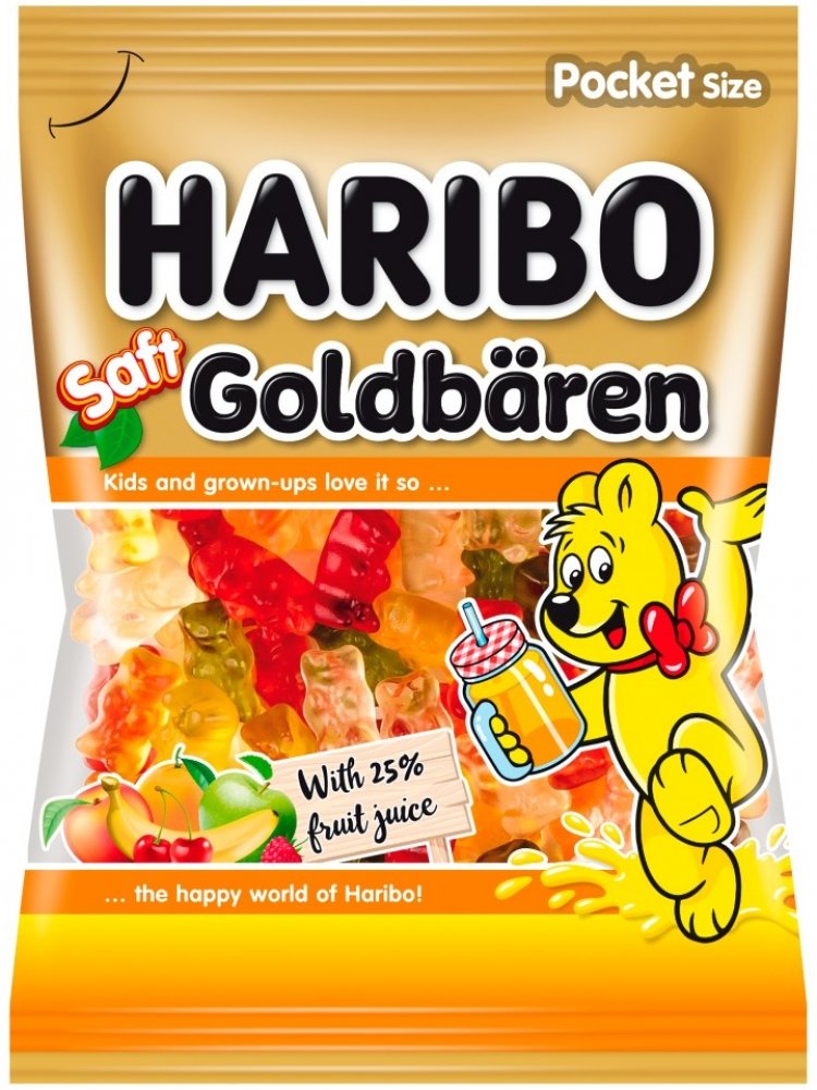 Základ cukrovinek HARIBO tvoří cukr, vepřová želatina a výtažky z ovoce a rostlin. Ovocné a rostlinné extrakty dodávají bonbonům barvu a chuť (např. kyselina citronová, ovšem ne jako konzervovací přípravek, ale pouze jako ochucovadlo v malém množství). Potřebné barevnosti se docílí smícháním ovocných základů černého rybízu, pomeranče, citrónu, kiwi a jabl...