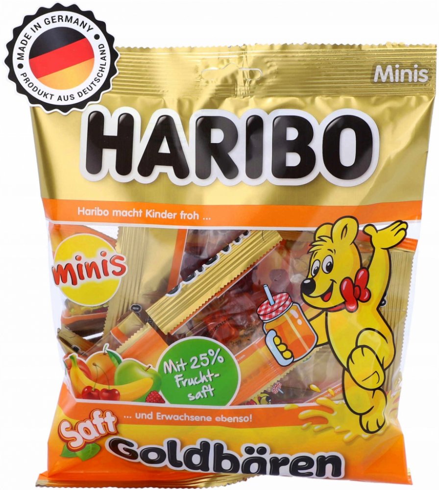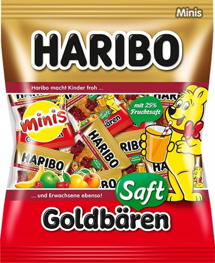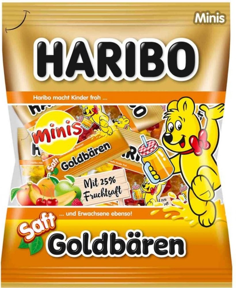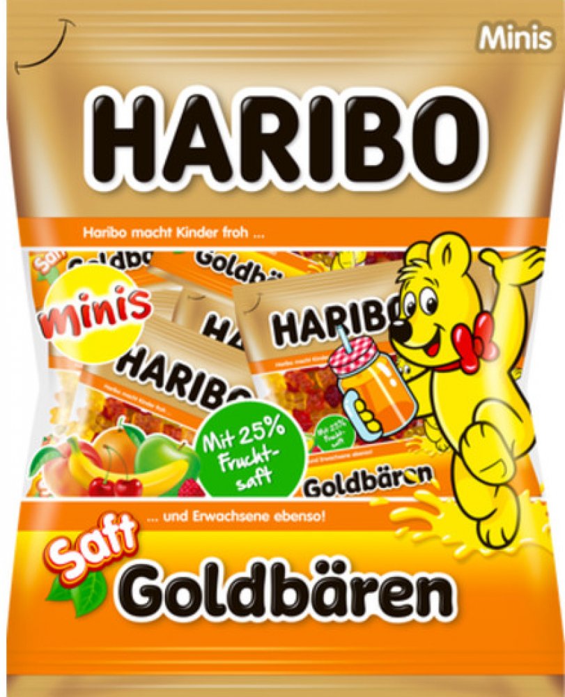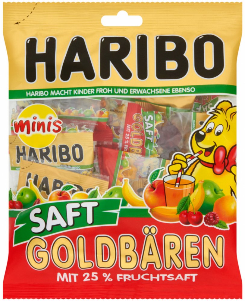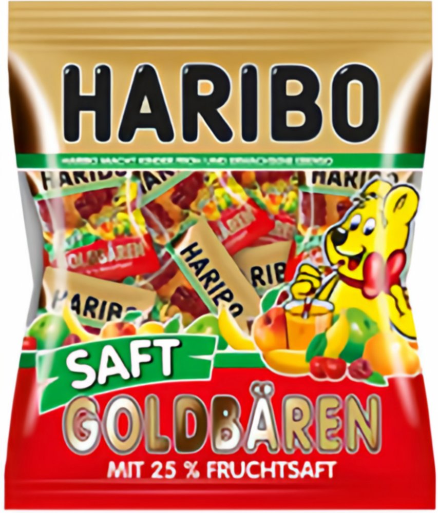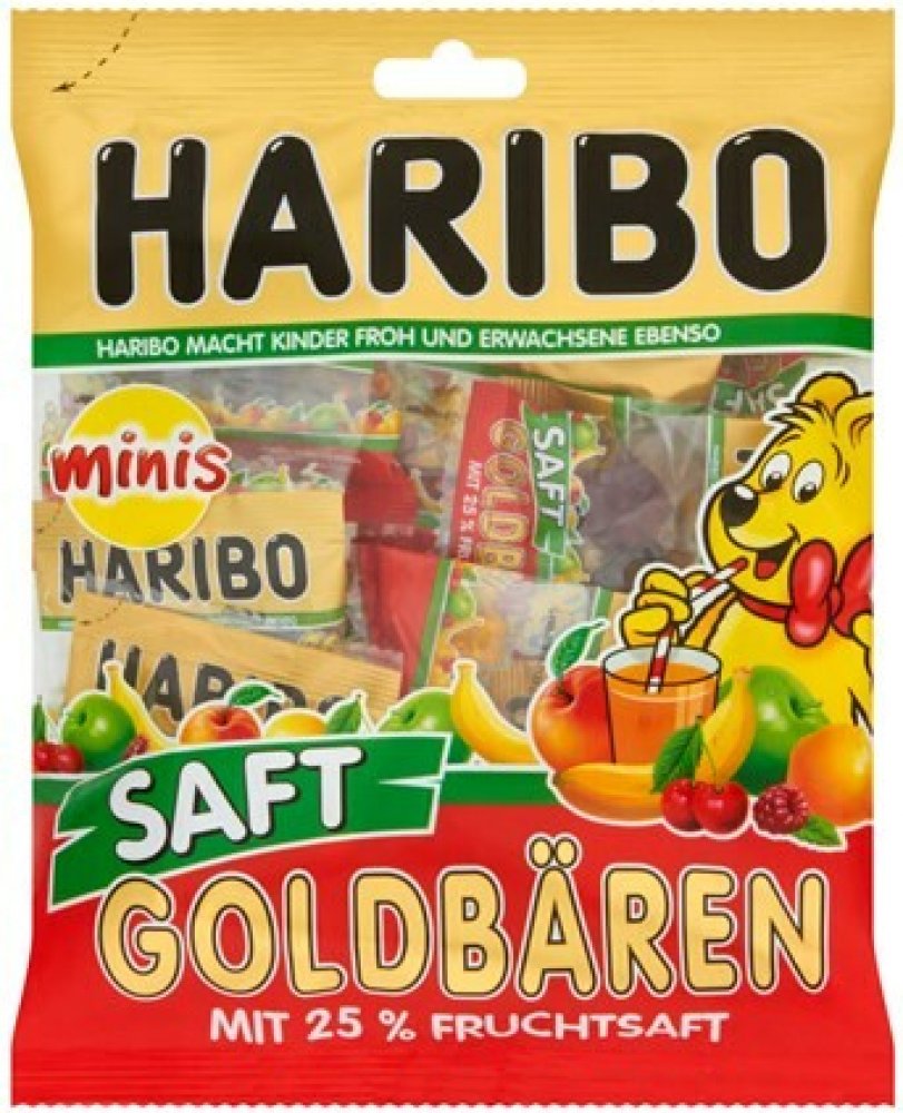 Šťavnaté, jemné a chutné. Vysoký obsah ovocné šťávy 25% dává Haribo Saft Goldbears jejich jedinečný charakter. V ovocných příchutích jablek, jemných pomerančů, malin, broskví, třešní a banánů jsou extrémně měkké plyšové medvídky opravdovým zážitkem pro malé i velké.