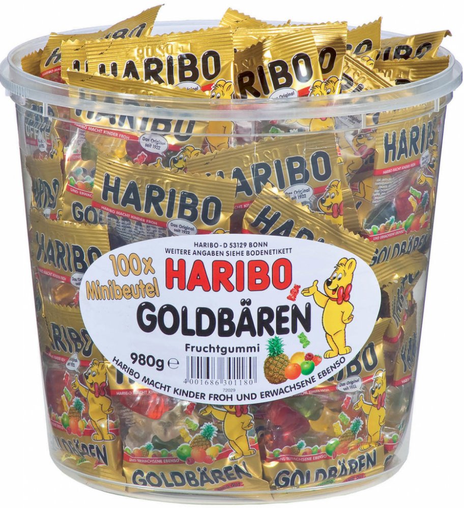 Gumoví medvídci Haribo jsou vyráběni z želatiny přírodního původu, takže nejenže výborně chutnají, ale také patří mezi nejzdravější želatinové bonbóny na trhu. Od svého vzniku v roce 1922 ušli dlouhou cestu a prošli řadou změn, přesto si však zachovávají své původní ovocné aroma, měkkost a šťavnatost, díky čemuž jsou oblíbené takřka po celém světě.