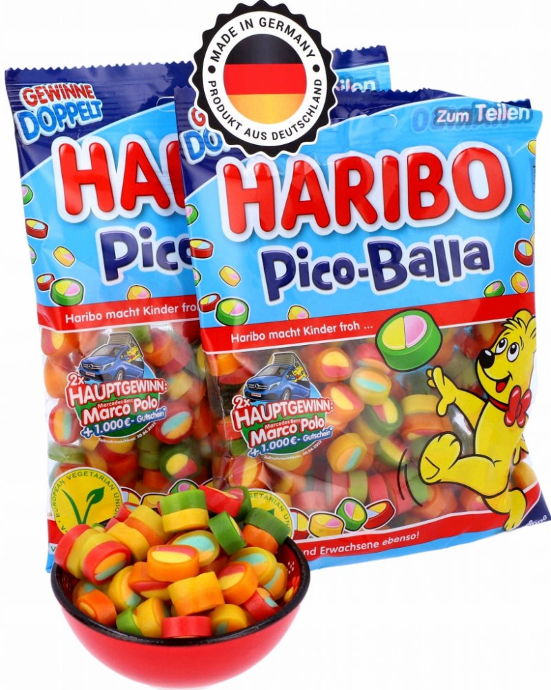 Haribo Pico-Balla je mix ovocných gumových bonbonů v různých pestrých barvách a příchutích. Tento jedinečný produkt spojuje ovoce a sladkosti v kombinaci s jemným šumivým efektem. Bonbóny mají zajímavou strukturu a jsou ideální pro každou příležitost. S chutí citrónu a jahody, a to v kombinaci s přírodními barviv a extrakty, se stávají skvélé volbou pro milovníky sladkostí.