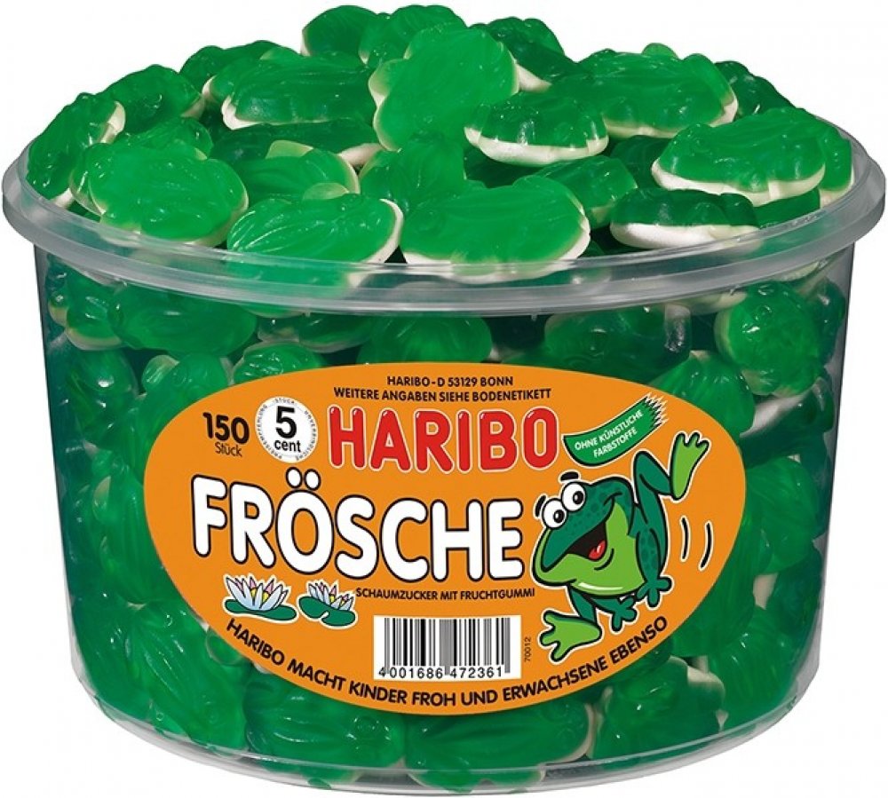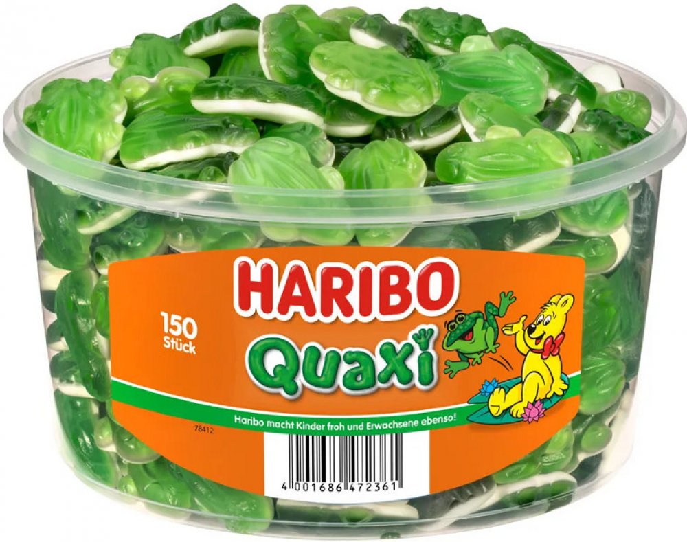 Haribo Quaxi Fröschli želé žáby Dóza 150 x 7 g 1,05 kg