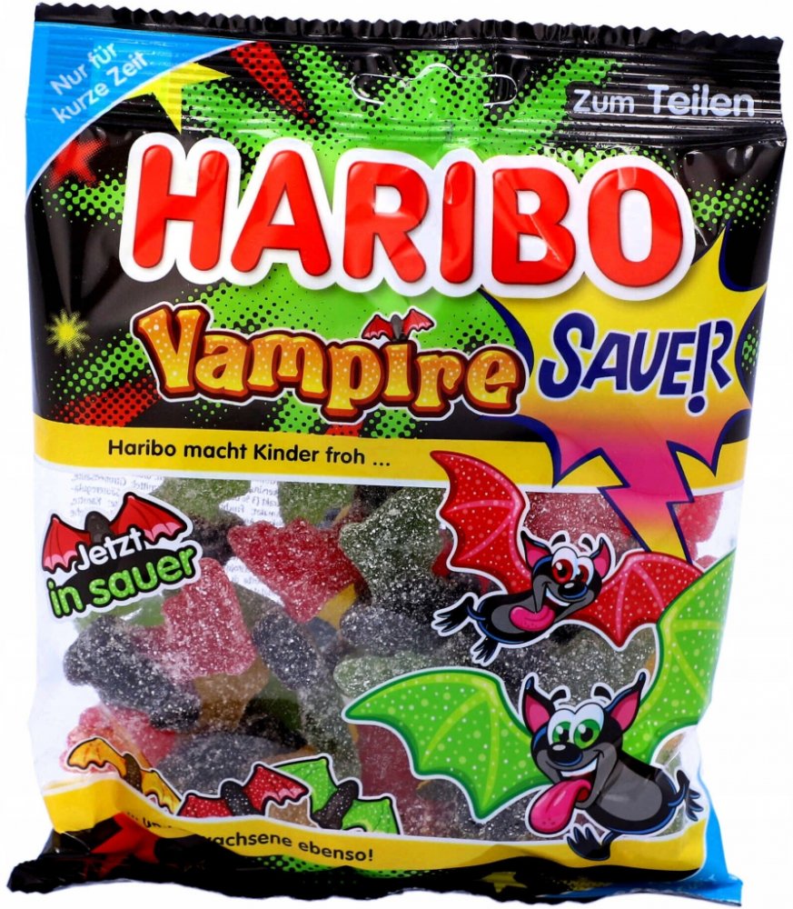 Není třeba se jich bát – právě naopak! Populární kombinace měkké, pikantní lékořice a lahodné ovocné gumy ve tvaru netopýra je k dispozici v ovocných příchutích jablka, třešně a citronu v kombinaci s pikantní lékořicí.