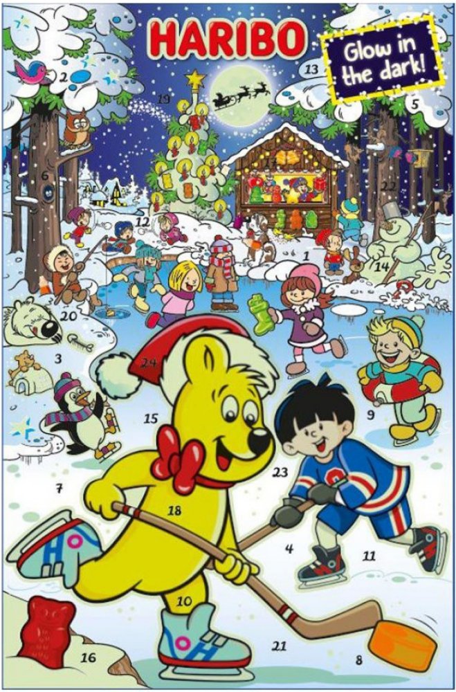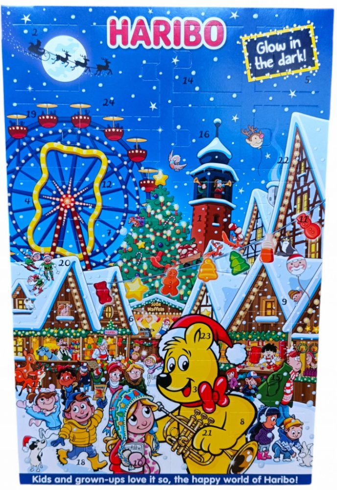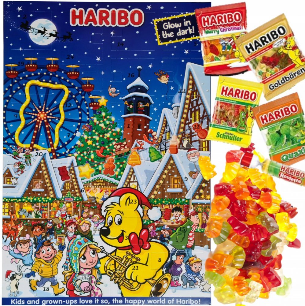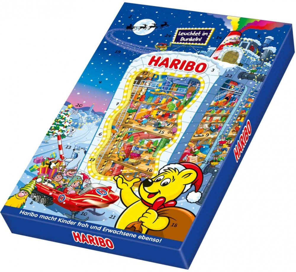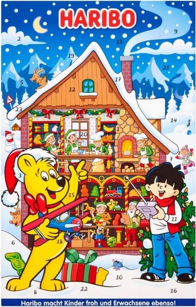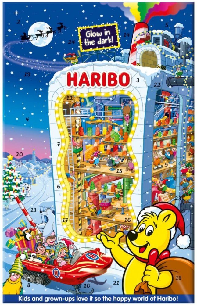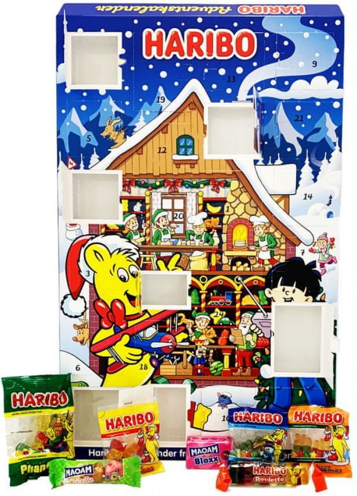 Se sladkokyselými překvapeními. Adventní kalendář Haribo je ideálním dárkem před Vánocemi. Nechá každý dětský pokoj zářit vánoční záře a nabízí širokou škálu klasických a vánočních výtvorů od Haribo a Maoam - nutnost pro každého fanouška občerstvení.