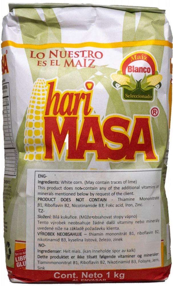 Kukuřičná mouka přímo z Mexika. Bílá kukuřičná moučka se vyrábí mletím bílé kukuřice, která je velmi oblíbená v Africe a na jihu Spojených států. Na rozdíl od pšeničné mouky kukuřičná mouka neobsahuje lepek, proto se doporučuje pro lidi trpící nesnášenlivostí lepku. Složení: bílá kukuřice Může obsahovat stopy vápna. Bíla kukuřičná mouka je bez konzervačních látek. Produkt výjimečné kvality, ideální pro rychlou a snadnou přípravu nejrůznějších a nejchutnějších receptů - tortill, Arepas, Tamale, dortů, krémů a mnoho dalších. Obsah balení: 1 kg Země původu: Mexiko