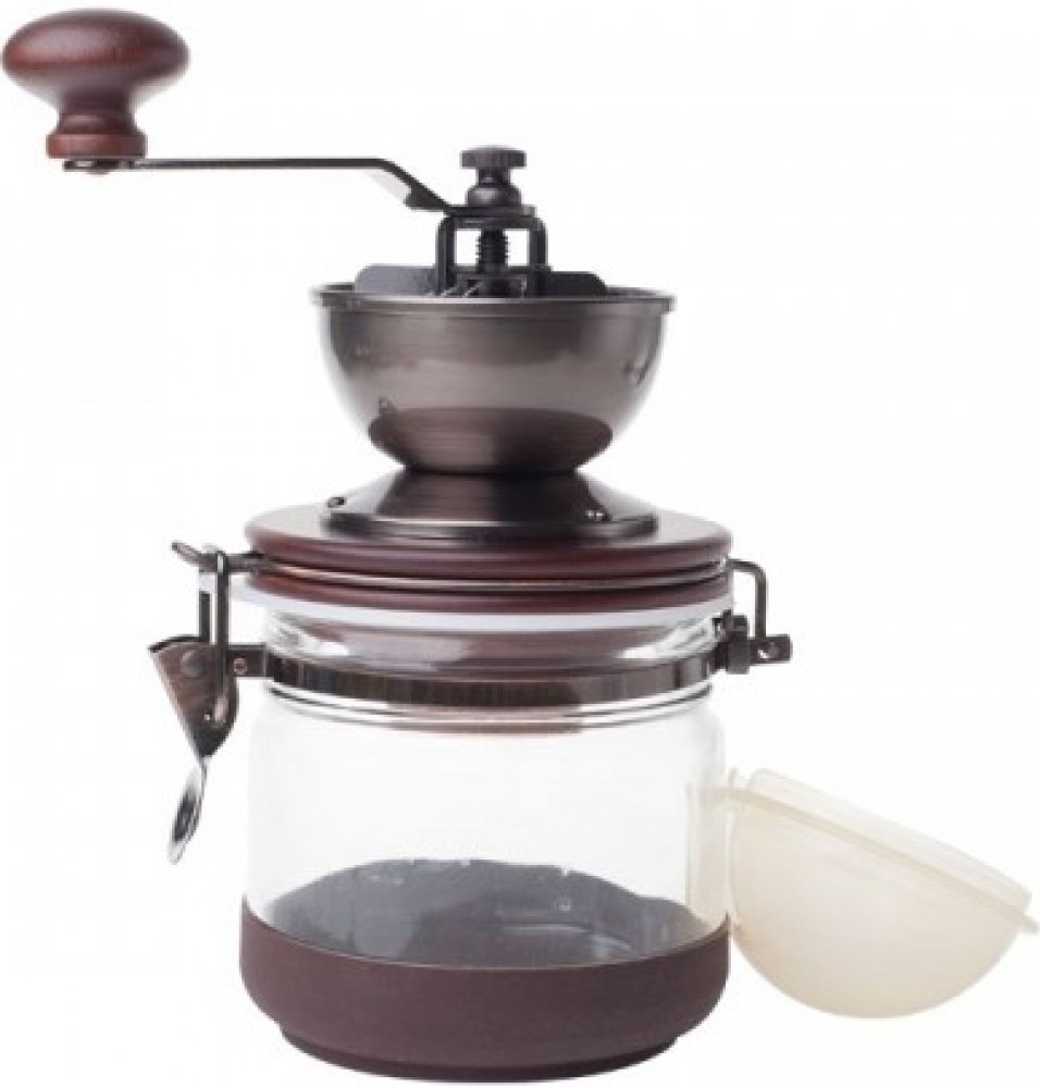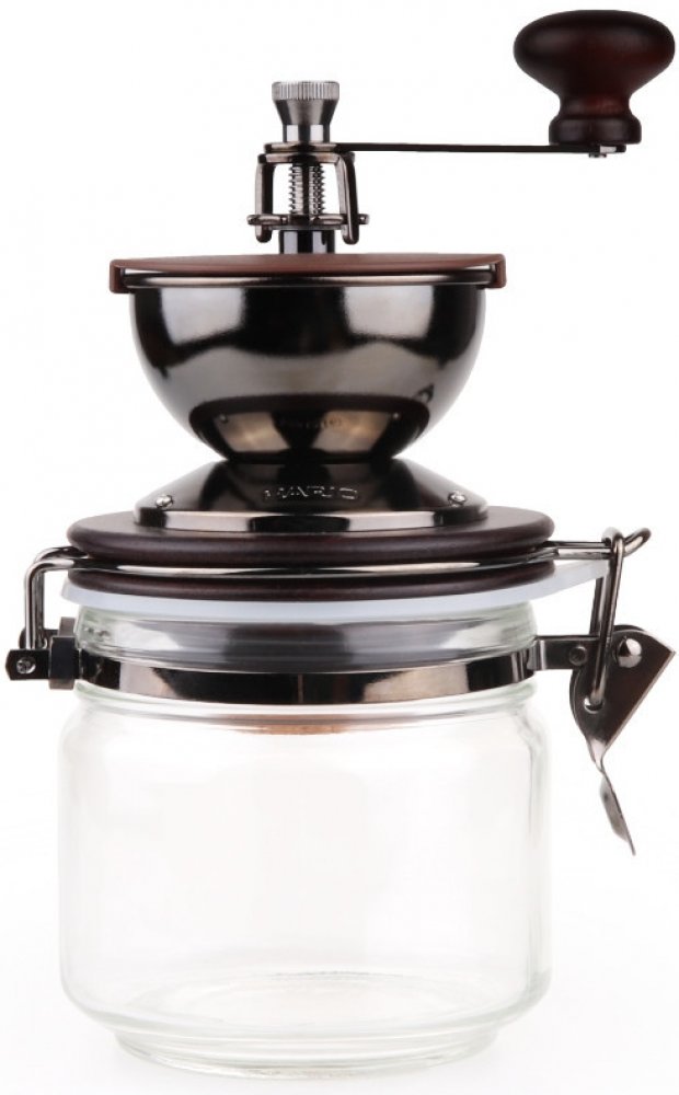 Nová verze oblíbeného kávomlýnku Hario Canister. Kopulovitou krytku nahradila rovná shodná s krytkou z MM-2, z téhož mlýnku je nyní také mlecí mechanismus. Klička je nyní rovná, dřevo lesklé a tmavší v odstínu mahagonu, kovové části stříbrné a násypka dostala označení logem Hario. Mlýnek na kávu nebo zavařovací sklenice? Ne, legraci si skutečně neděláme, Hario CMHN-4 skutečně vypadá jako zavařovac...
