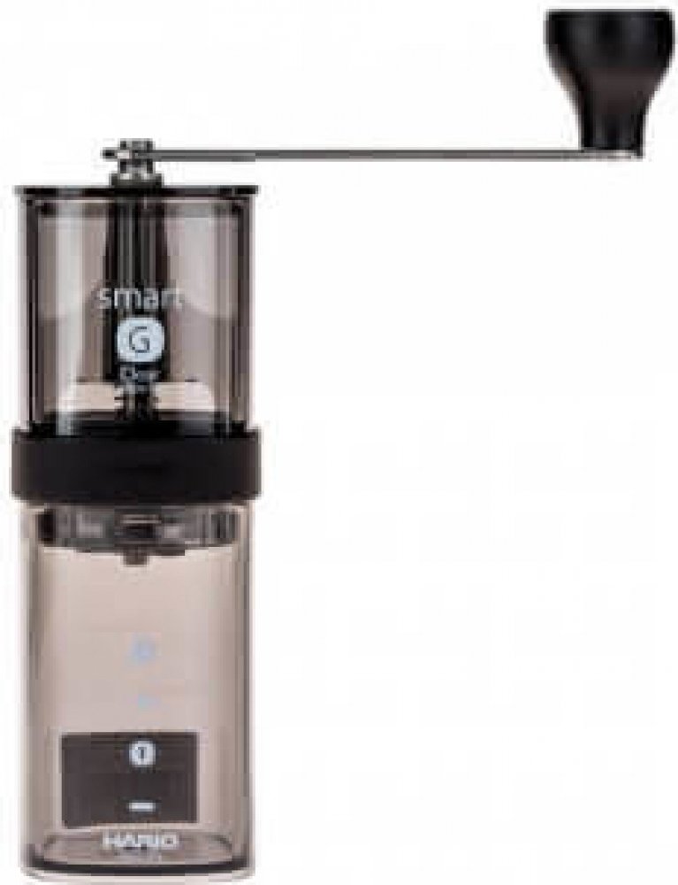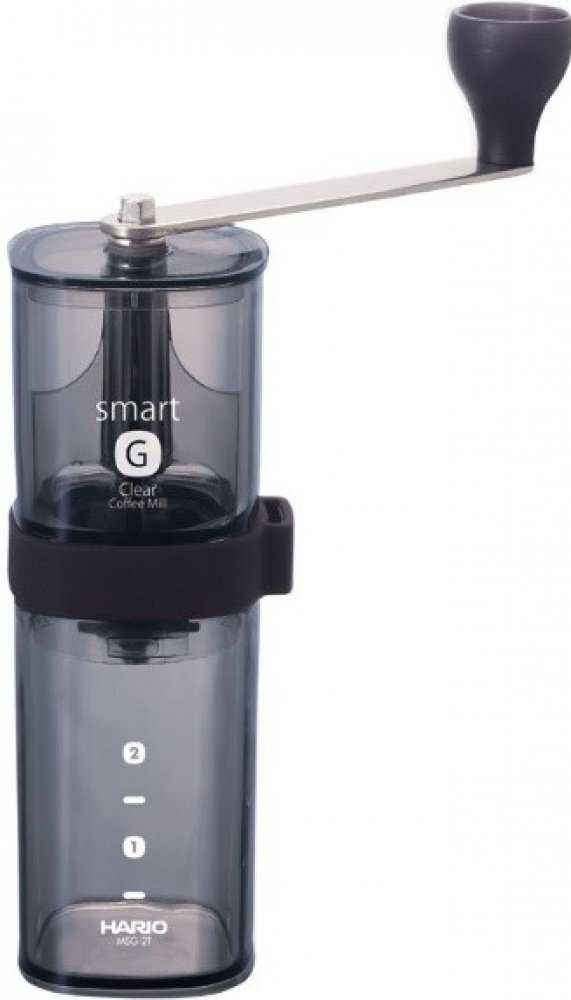 Minimalistický design, čiré plastové tělo. Snadno oddělitelná rukojeť z nerez oceli nasazená na bytelném šestihranu. Silikonová objímka, do které můžete upevnit rukojeť na cesty. Zásobník namleté kávu sundáte raz dva. Seznamte se s Hario smart G, novým chytrým kávomlýnkem. Keramické mlecí kameny kávomlýnku Hario smart G zajišťují rovnoměrné a konzistentní mletí, jsou velmi odolné a neovlivňují chuť samotné kávy. Hrubost mletí nastavíte rychle a jednoduše knoflíkem pod násypkou na kávová zrnka. Do té se vejde 24 gramů kávy.