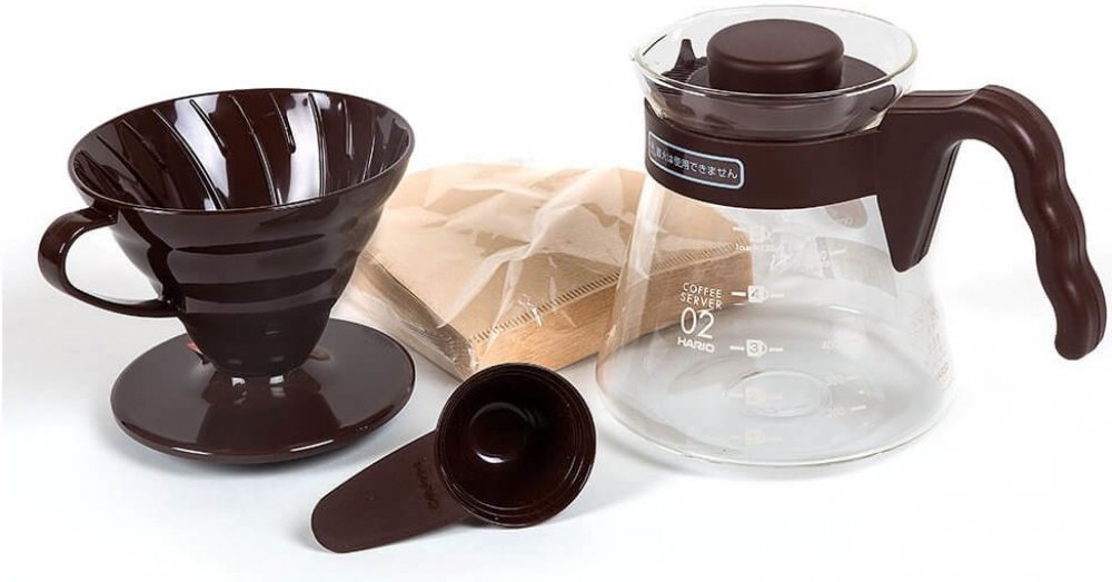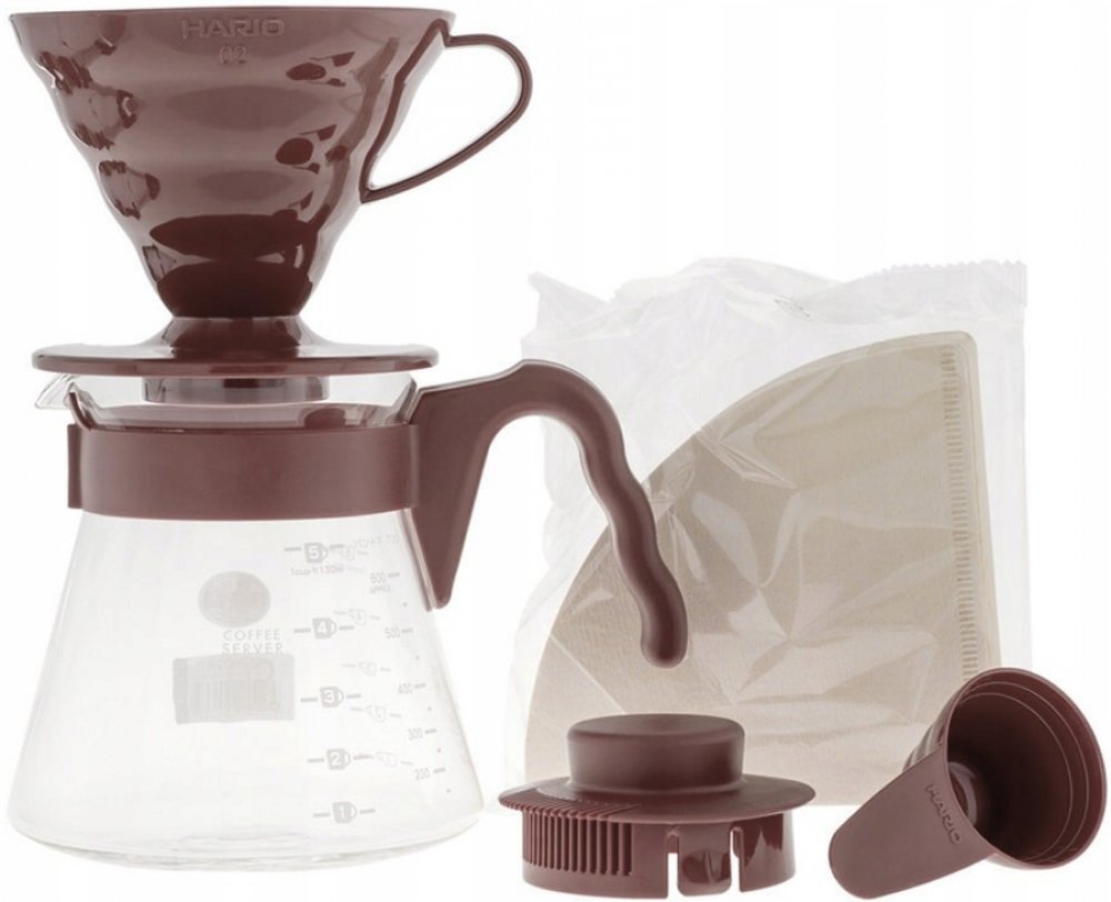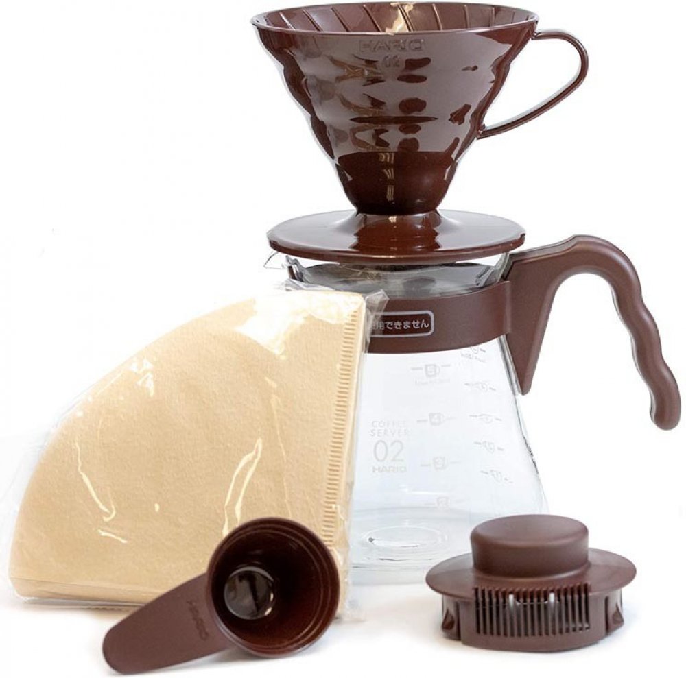 Hario V60-02 Pour Over Kit Plastic Brown