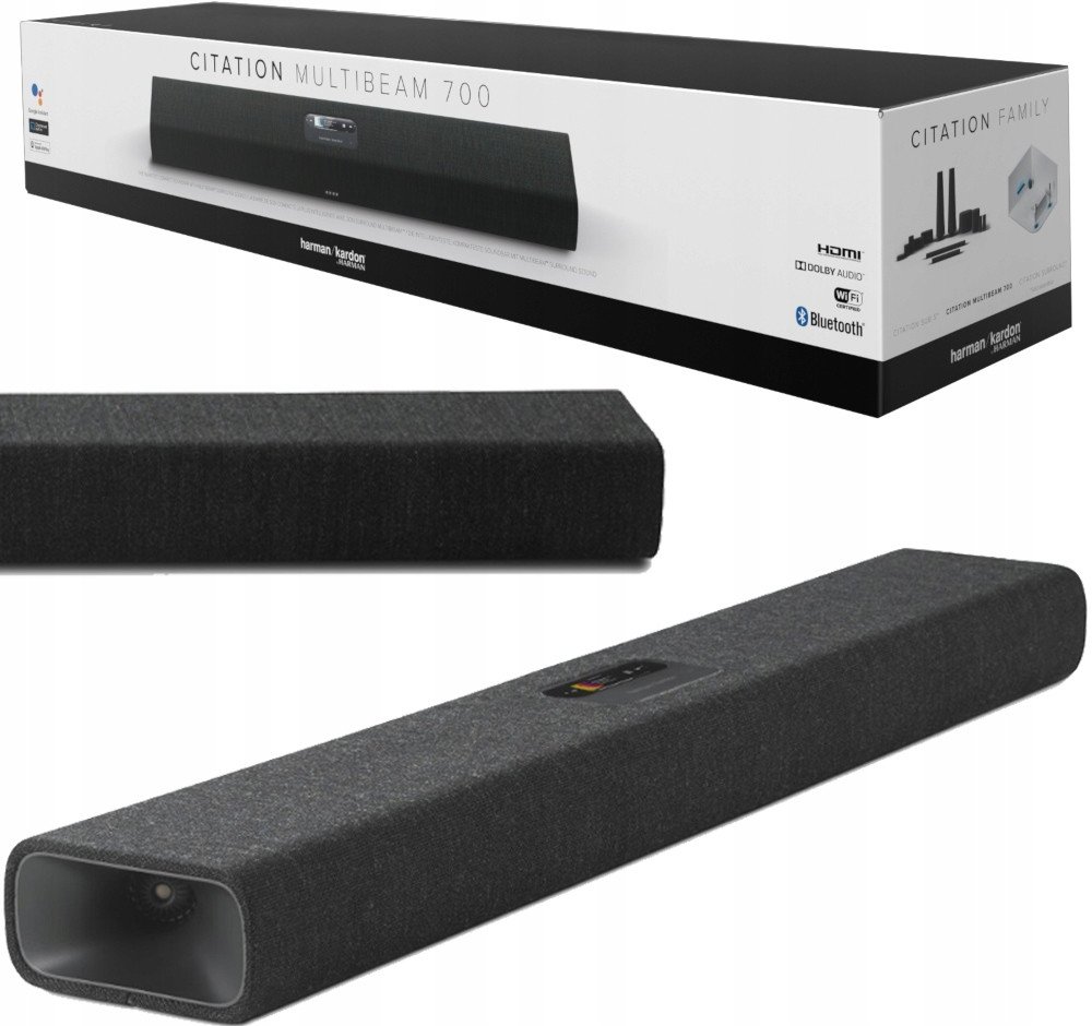 Prekrásny zvuk, ktorý sa k Vám prihovára Elegantný, dynamický a výkonný. Harman Kardon Citation MultiBeam™ 700 dodáva vášmu televízoru plný priestorový zvuk bez potreby ďalších reproduktorov a káblov. Ako samostatný soundbar, premieta bohatý zvuk do každého kúta miestnosti. Po spárovaní so zvyškom sortimentu Citation, môže Citation MultiBeam™ 700 fungovať aj ako stredový kanál a vytvoriť tak dokon...
