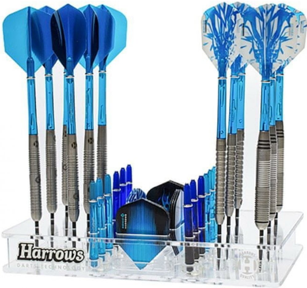 Držák na šipky Harrows Darts Station Skvělý organizační systém vhodný pro hru doma, v hospodě nebo v klubu.Držák je vyroben z kvalitního, odolného, průhledného akrylu.Může být umístěn na jakýkoliv rovný povrch, na stůl, poličku nebo na stěnu (montážní materiál není součástí balení).Držák obsahuje místo pro 12 šipek (Steel nebo Soft), 12 násadek a 12 letek. Balení obsahuje pouze držák bez jakéhokol...