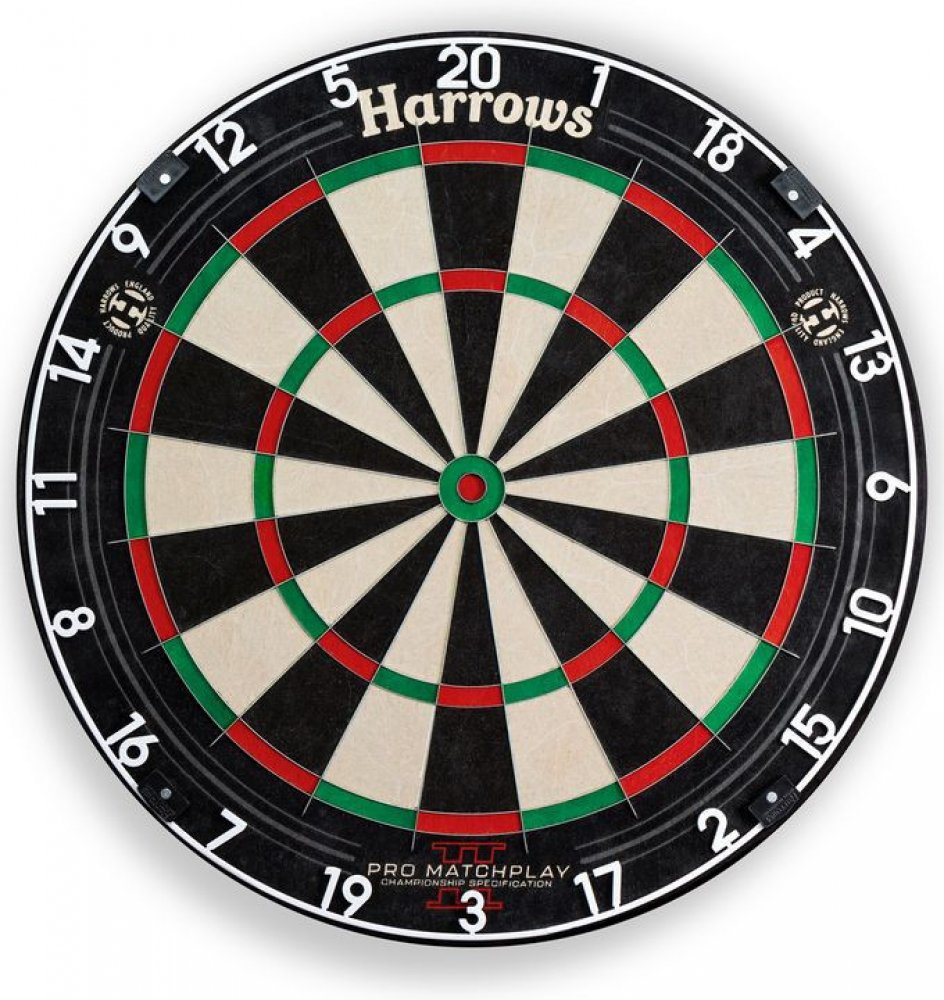 Harrows Pro Matchplay 2 je profesionální sisalový terč s ultra tenkým drátem, navržený pro maximální odolnost a přesnost. Ideální pro turnaje i domácí trénink. Harrows Pro Matchplay 2 – profesionální sisalový terč s ultra tenkým drátemHarrows Pro Matchplay 2 je špičkový terč vyrobený z kvalitního afrického sisalu, navržený pro dlouhou životnost a vysokou odolnost. Díky extrémně tenkému tvrzenému drátu minimalizuje odrazy a zajišťuje maximální skórovací potenciál.Hlavní vlastnosti:Materiál: vysoce kvalitní africký sisalDrát: ultra tenký, tvrzený – minimalizace odskokůČíselník: dobře viditelný, pro lepší přehlednostMontáž: včetně držáku na zeď a montážního materiáluHmotnost: cca 5 kgDoporučení pro údržbu:Chraňte terč před přímým slunečním zářením a vlhkostíPoužívejte pouze ostré kovové hrotyPravidelně otáčejte terč pro rovnoměrné opotřebeníHarrows Pro Matchplay 2 je ideální volbou pro hráče, kteří hledají profesionální terč s vysokou kvalitou zpracování a maximální přesností. Skvělý zážitek ze hry zaručen.