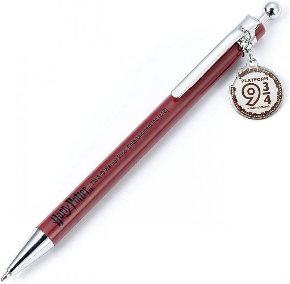 Stylová propiska s přívěskem v podobě návěstí nástupiště 9 a 3/4.
