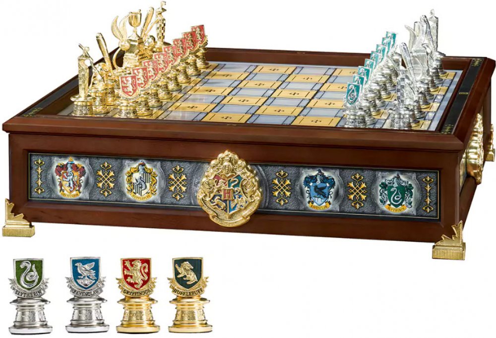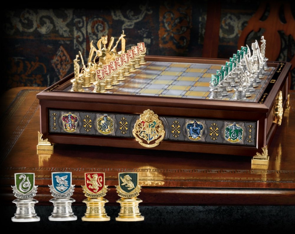 Publikace: Harry Potter: Bradavické famfrpálové šachy - neuveden. Unikátní šachy z britské dílny Noble Collection. Šachová sada, kterou si zamiluje kouzelník i mudla. Každý hráč si může vybrat svojí oblíbenou bradavičkou kolej. Vyberete si Zmijozel nebo Nebelvír. Nebo dáte šanci Havraspáru či Mrzimoru? Velikost: cca 30 Publikace: Harry Potter: Bradavické famfrpálové šachy - neuveden.
