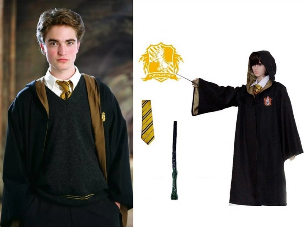 Plášť s kapucí: Plášť je mistrovsky navržený tak, aby připomínal ten, který nosil Harry Potter ve filmech. Zvenku je černý a zevnitř fialový, což dodává plášti tajemný a elegantní vzhled. Kapuce dodává kostýmu autentický čarodějnický nádech a umožňuje vám se snadno ukrýt před mudly.